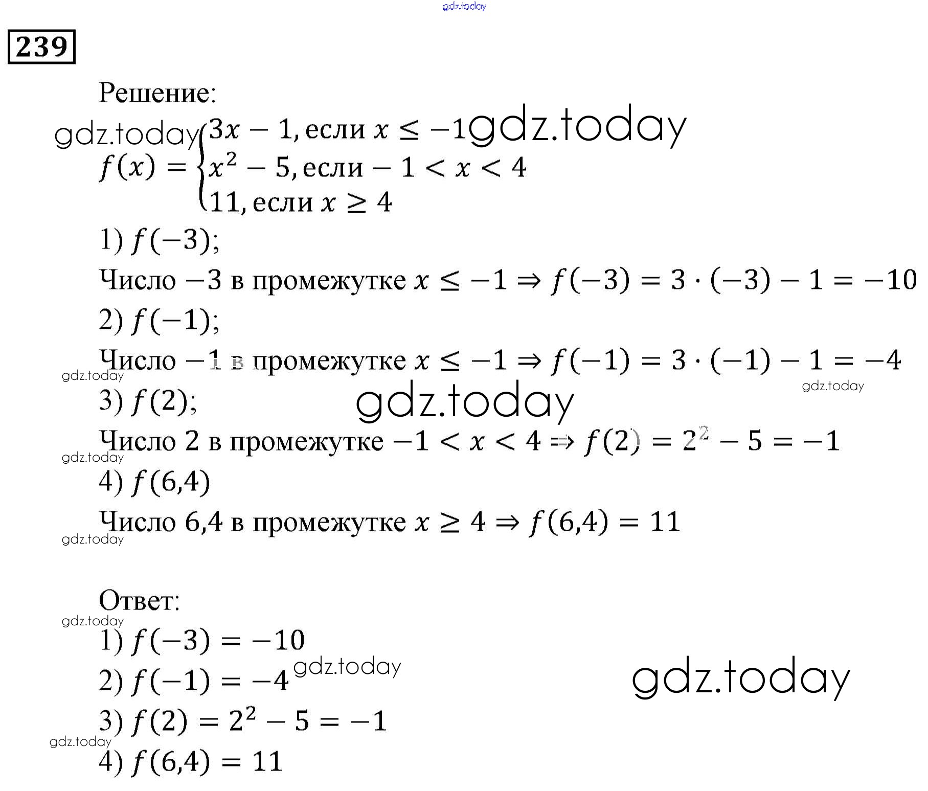 Ответы к Решение. Упражнения 239 Учебнику по Алгебре для 9 класса Мерзляк, Полонский Вентана-граф, Просвещение Алгоритм успеха 2016, 2021