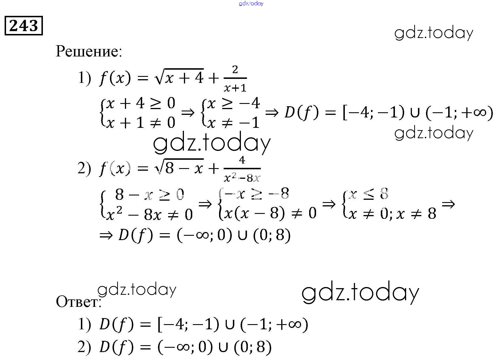 Ответы к Решение. Упражнения 243 Учебнику по Алгебре для 9 класса Мерзляк, Полонский Вентана-граф, Просвещение Алгоритм успеха 2016, 2021