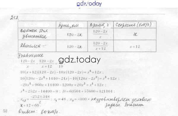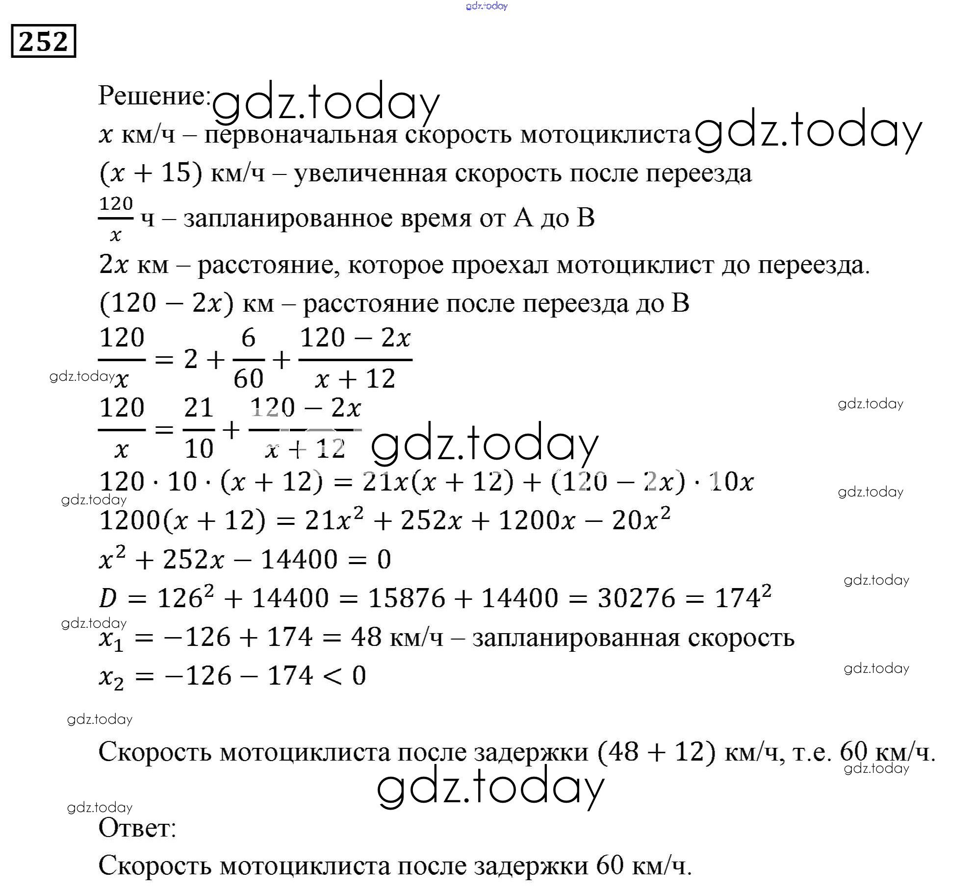 Ответы к Решение. Упражнения 252 Учебнику по Алгебре для 9 класса Мерзляк, Полонский Вентана-граф, Просвещение Алгоритм успеха 2016, 2021