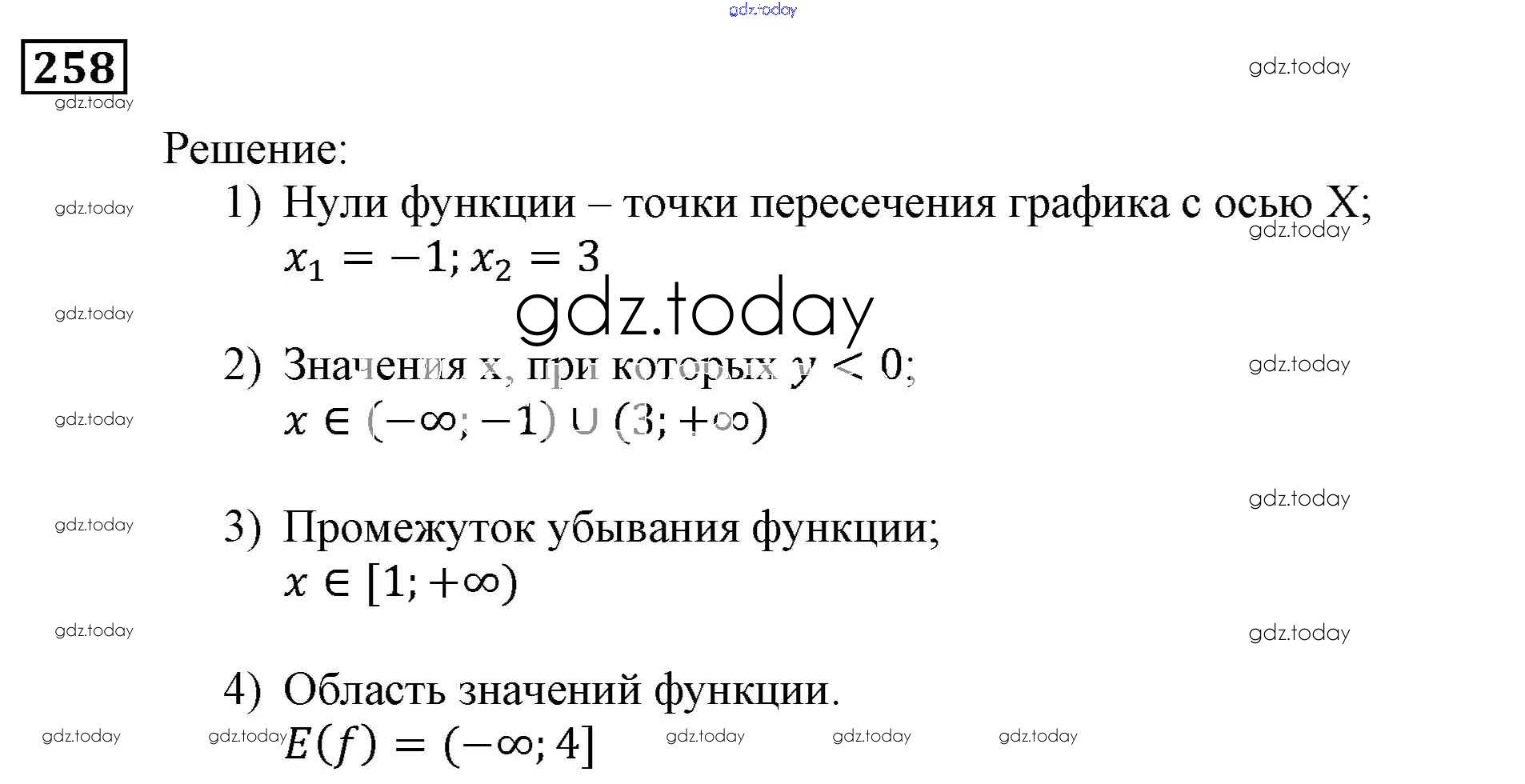 На страницах сайта gdz.today вы найдете учебный и вспомогательный материал, направленный на улучшения знаний школьной программы. ГДЗ - онлайн мир знаний Решение. Упражнения 258 Учебнику по Алгебре для 9 класса Мерзляк, Полонский Вентана-граф, Просвещение Алгоритм успеха 2016, 2021