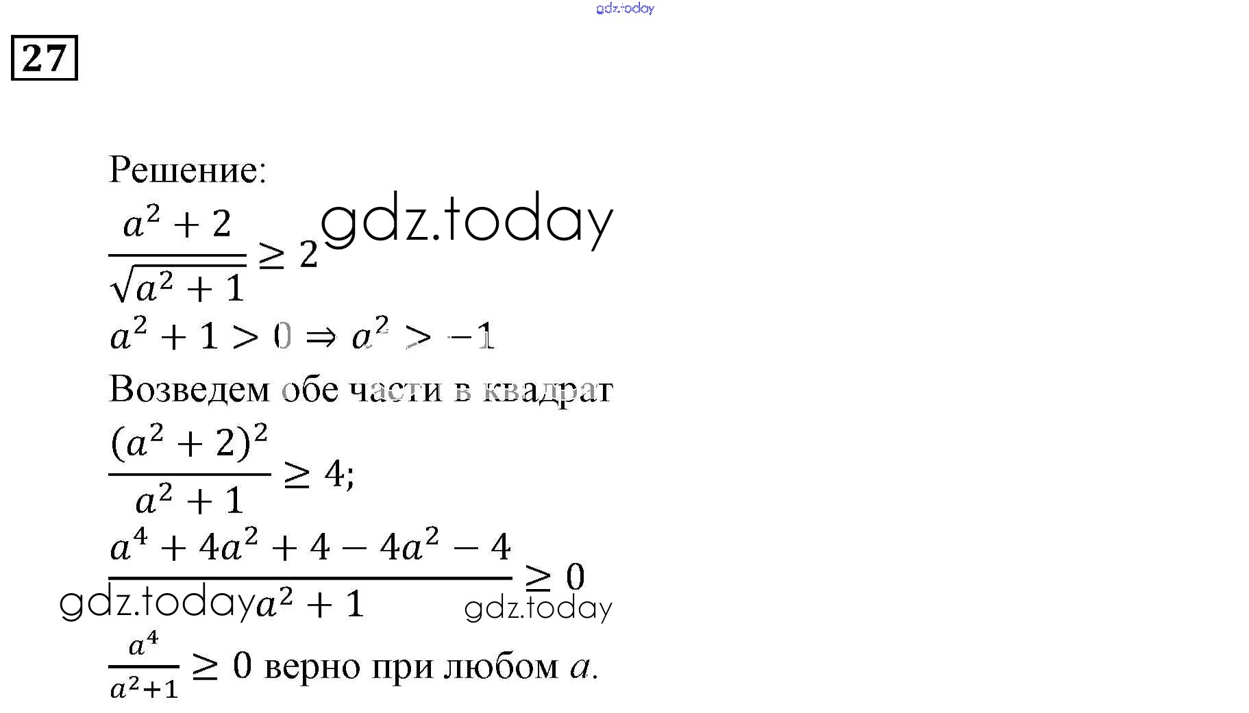 На страницах сайта gdz.today вы найдете учебный и вспомогательный материал, направленный на улучшения знаний школьной программы. ГДЗ - онлайн мир знаний Решение. Упражнения 27 Учебнику по Алгебре для 9 класса Мерзляк, Полонский Вентана-граф, Просвещение Алгоритм успеха 2016, 2021