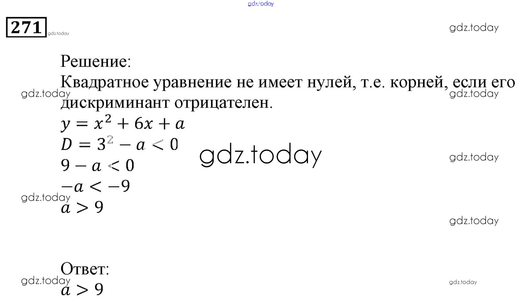 Ответы к Решение. Упражнения 271 Учебнику по Алгебре для 9 класса Мерзляк, Полонский Вентана-граф, Просвещение Алгоритм успеха 2016, 2021