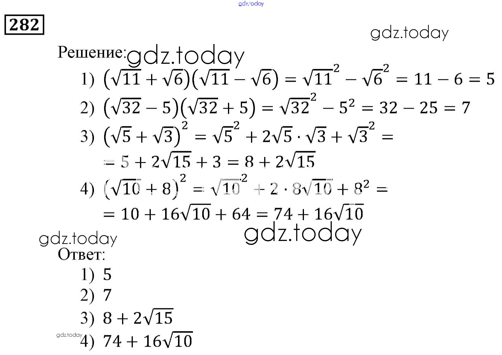 Ответы к Решение. Упражнения 282 Учебнику по Алгебре для 9 класса Мерзляк, Полонский Вентана-граф, Просвещение Алгоритм успеха 2016, 2021