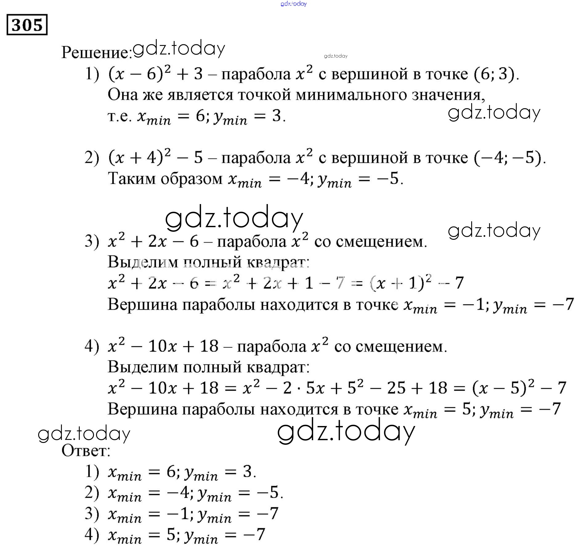 Ответы к Решение. Упражнения 305 Учебнику по Алгебре для 9 класса Мерзляк, Полонский Вентана-граф, Просвещение Алгоритм успеха 2016, 2021