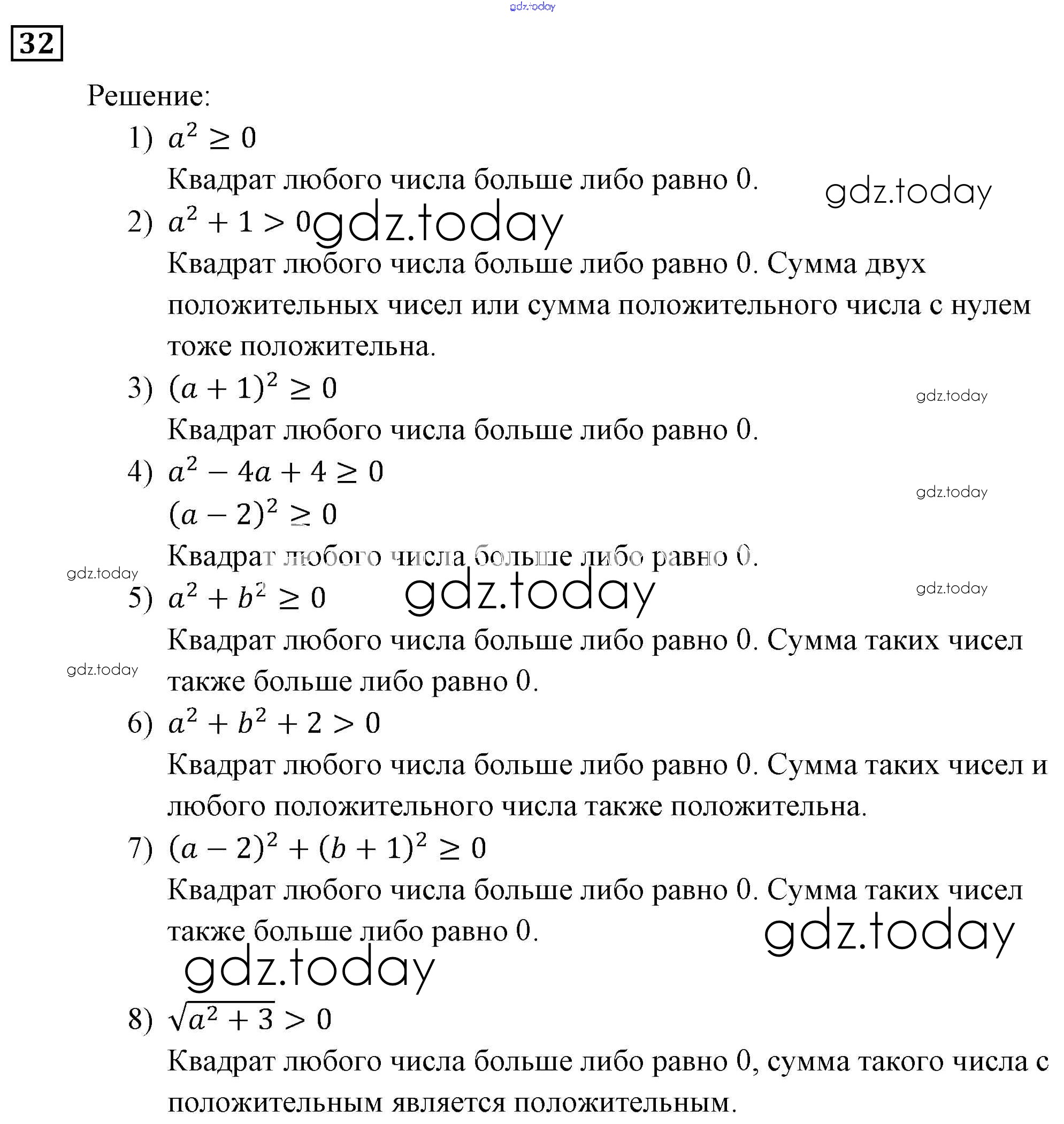 Ответы к Решение. Упражнения 32 Учебнику по Алгебре для 9 класса Мерзляк, Полонский Вентана-граф, Просвещение Алгоритм успеха 2016, 2021