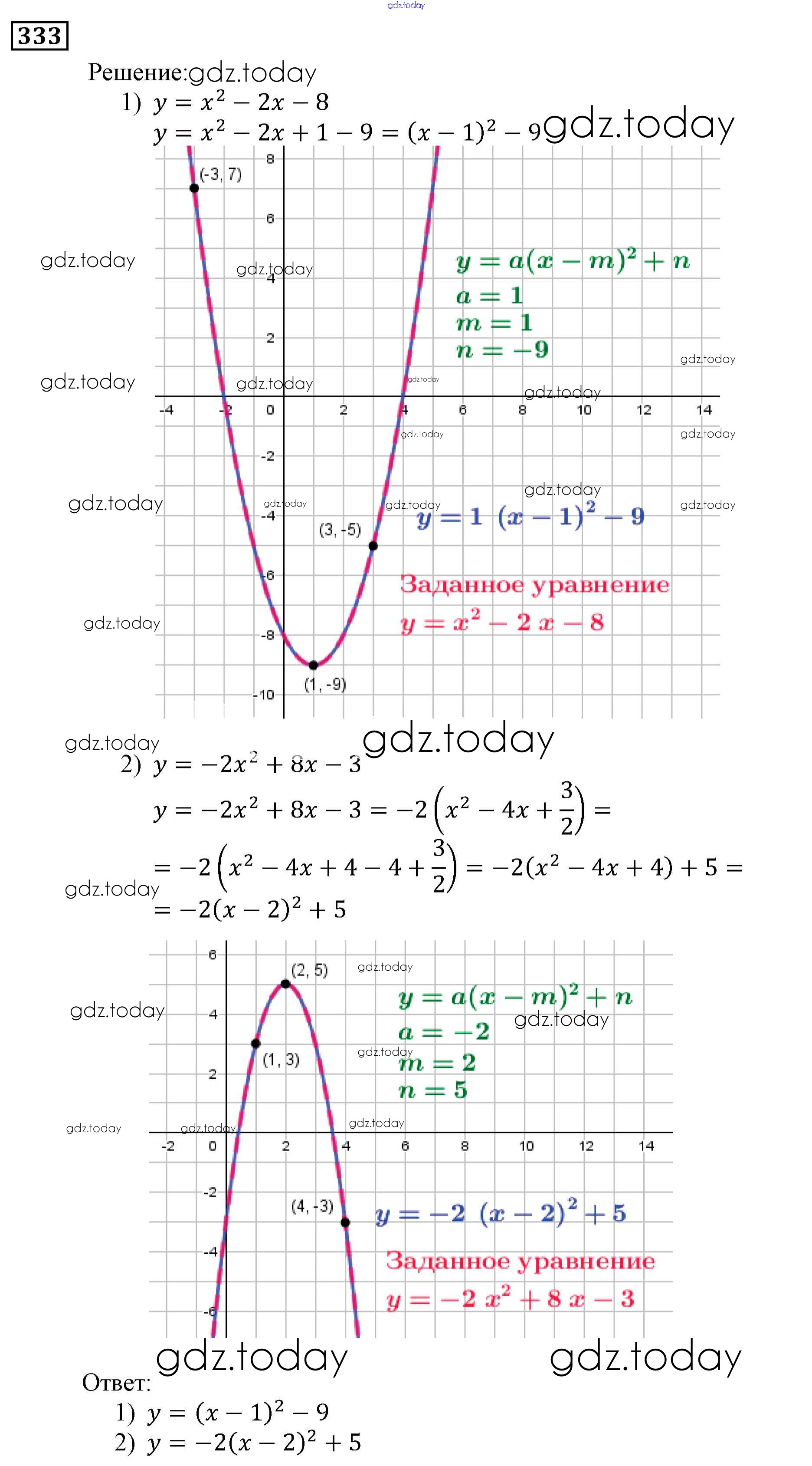 Ответы к Решение. Упражнения 333 Учебнику по Алгебре для 9 класса Мерзляк, Полонский Вентана-граф, Просвещение Алгоритм успеха 2016, 2021