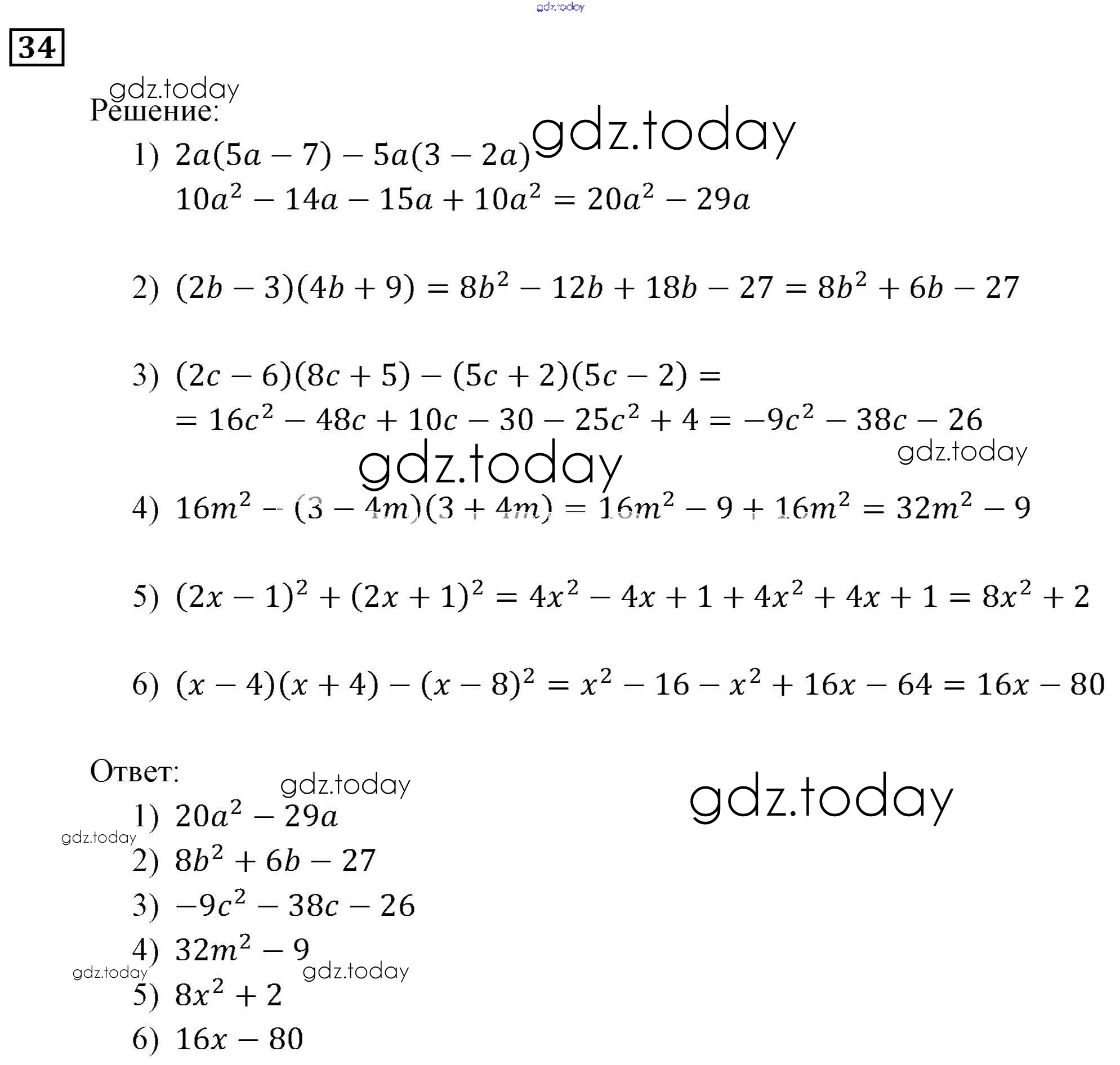 Ответы к Решение. Упражнения 34 Учебнику по Алгебре для 9 класса Мерзляк, Полонский Вентана-граф, Просвещение Алгоритм успеха 2016, 2021