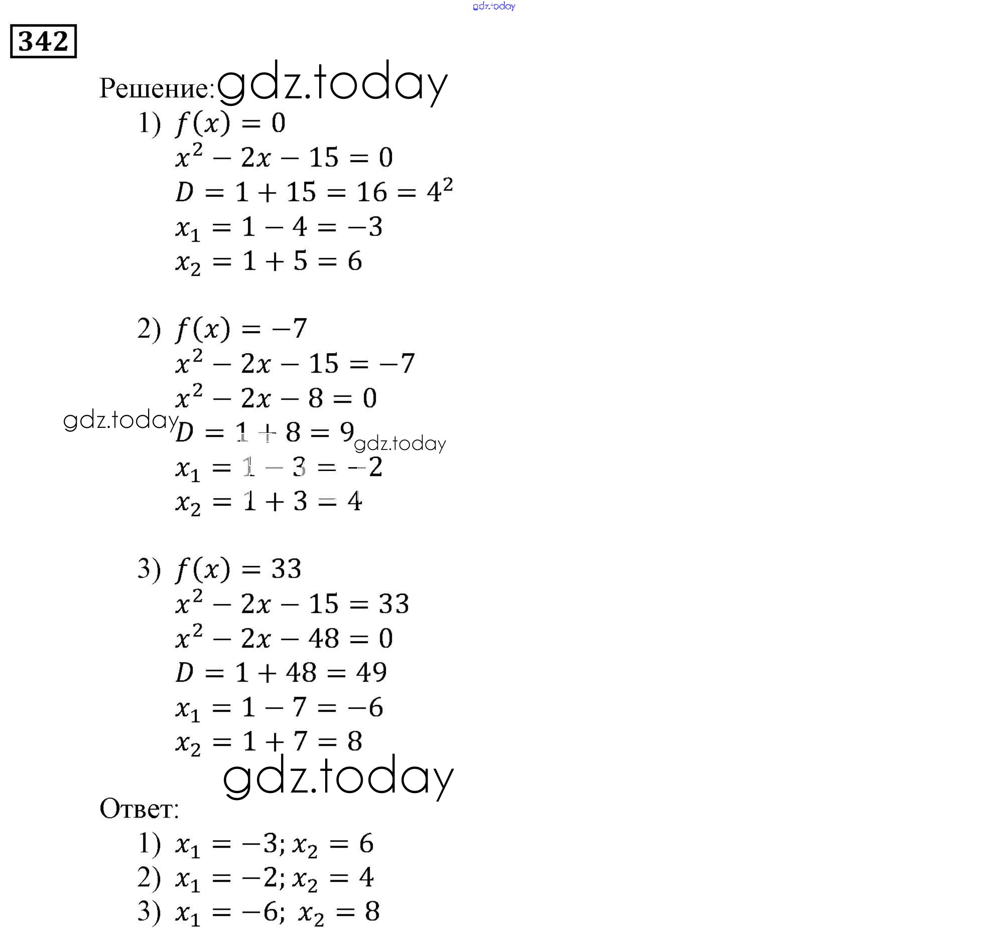 Ответы к Решение. Упражнения 342 Учебнику по Алгебре для 9 класса Мерзляк, Полонский Вентана-граф, Просвещение Алгоритм успеха 2016, 2021