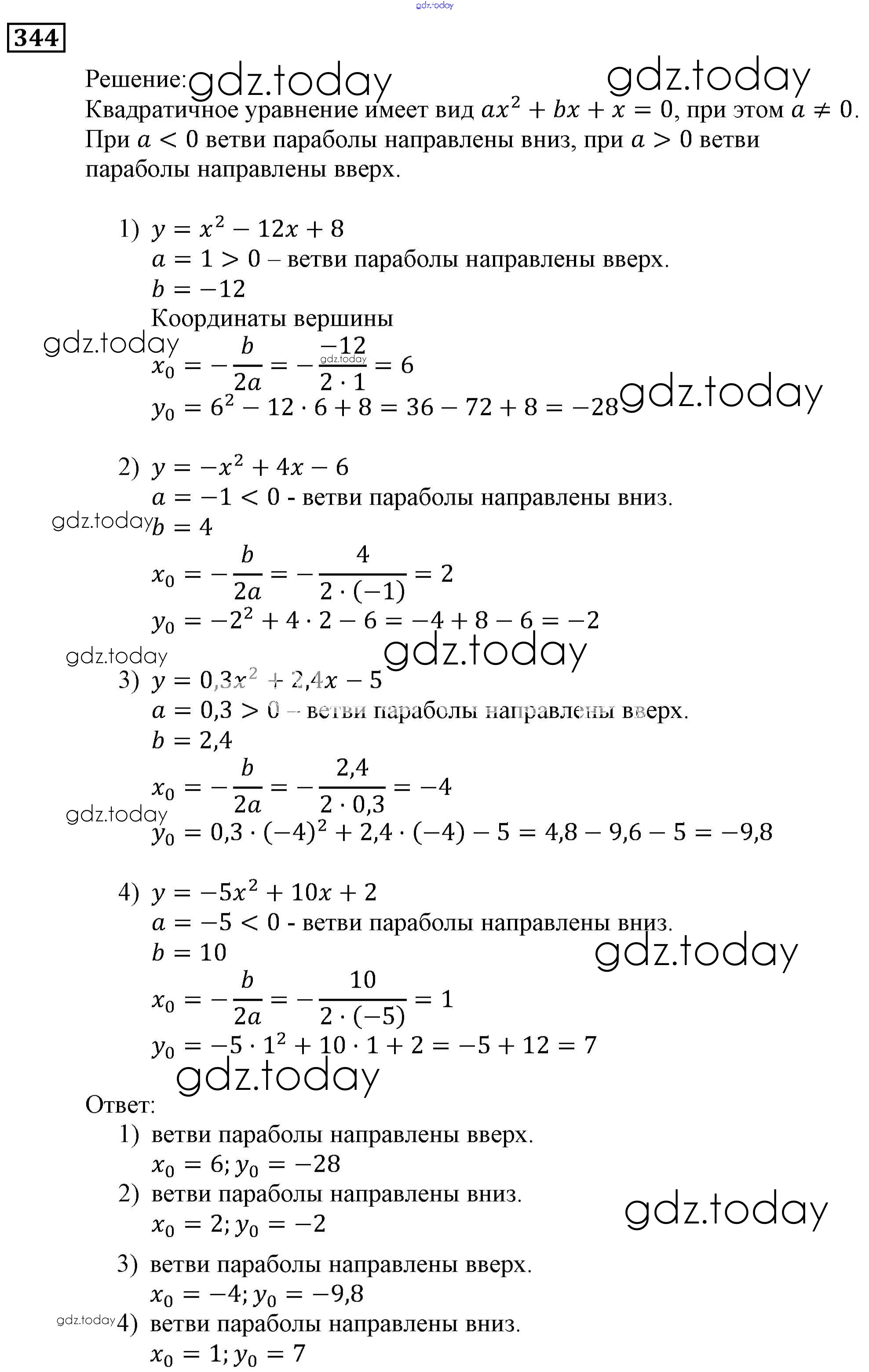 Ответы к Решение. Упражнения 344 Учебнику по Алгебре для 9 класса Мерзляк, Полонский Вентана-граф, Просвещение Алгоритм успеха 2016, 2021