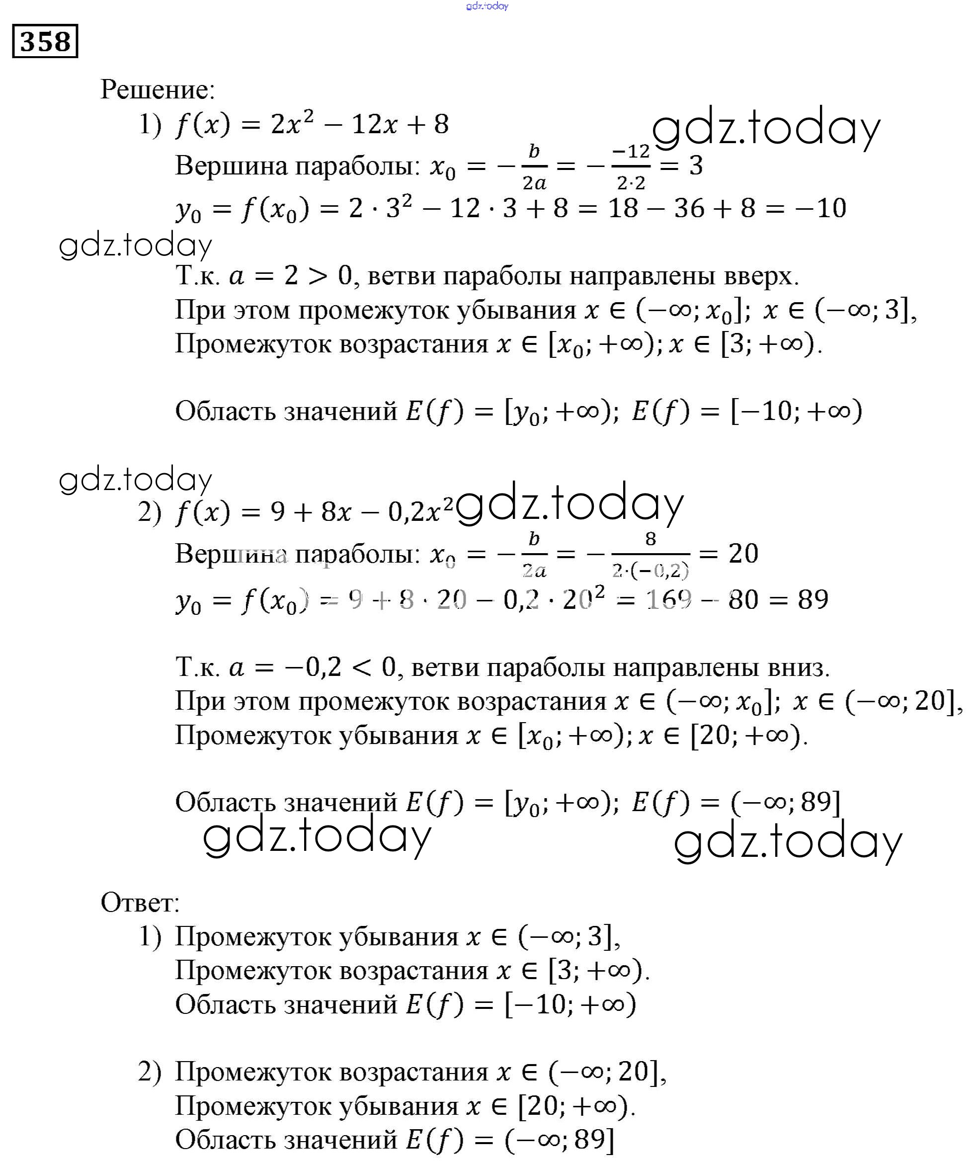 Ответы к Решение. Упражнения 358 Учебнику по Алгебре для 9 класса Мерзляк, Полонский Вентана-граф, Просвещение Алгоритм успеха 2016, 2021