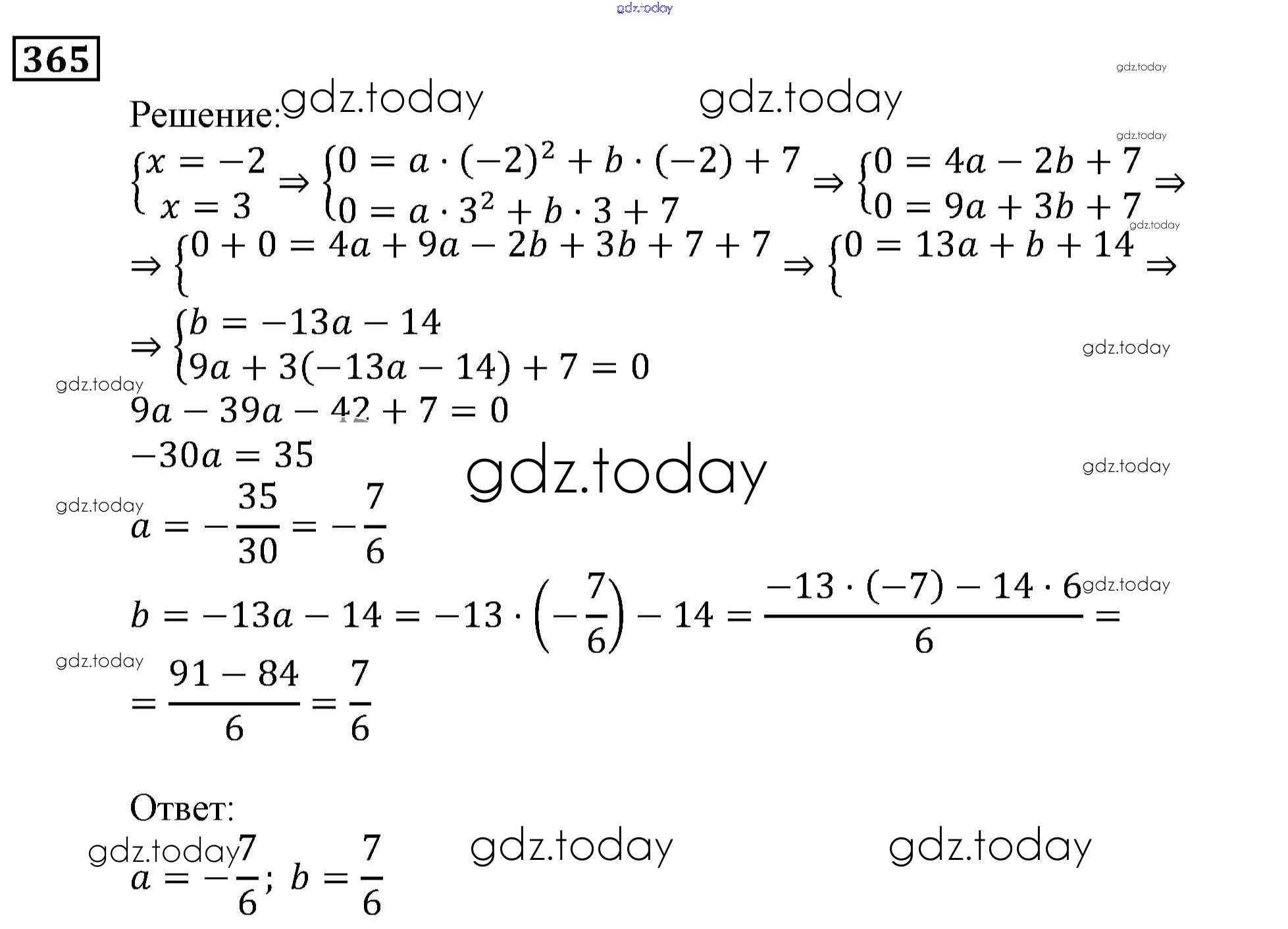 На страницах сайта gdz.today вы найдете учебный и вспомогательный материал, направленный на улучшения знаний школьной программы. ГДЗ - онлайн мир знаний Решение. Упражнения 365 Учебнику по Алгебре для 9 класса Мерзляк, Полонский Вентана-граф, Просвещение Алгоритм успеха 2016, 2021