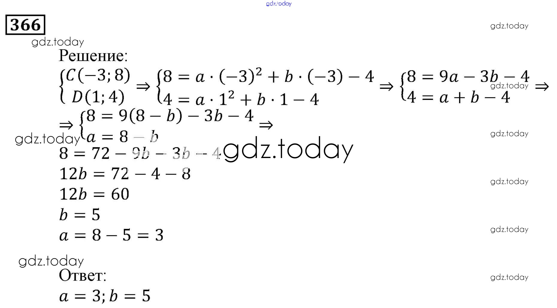 На страницах сайта gdz.today вы найдете учебный и вспомогательный материал, направленный на улучшения знаний школьной программы. ГДЗ - онлайн мир знаний Решение. Упражнения 366 Учебнику по Алгебре для 9 класса Мерзляк, Полонский Вентана-граф, Просвещение Алгоритм успеха 2016, 2021