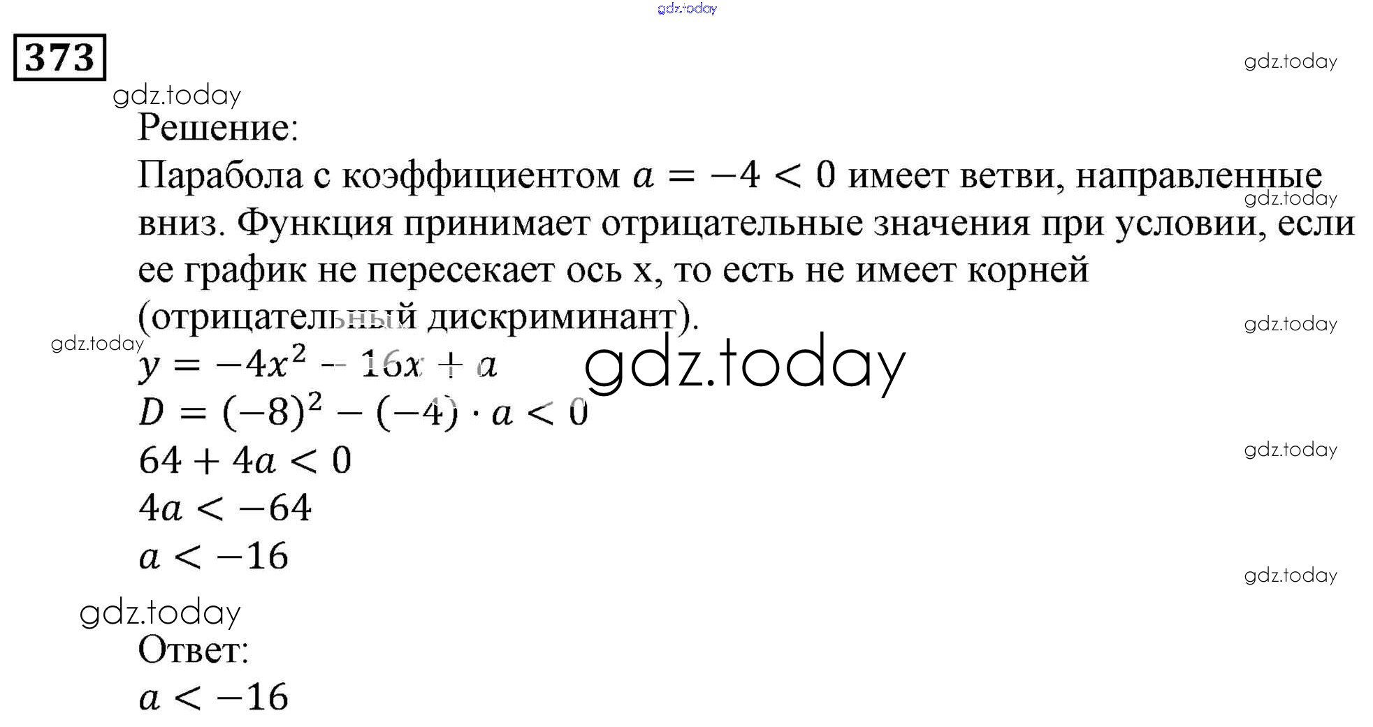 Ответы к Решение. Упражнения 373 Учебнику по Алгебре для 9 класса Мерзляк, Полонский Вентана-граф, Просвещение Алгоритм успеха 2016, 2021