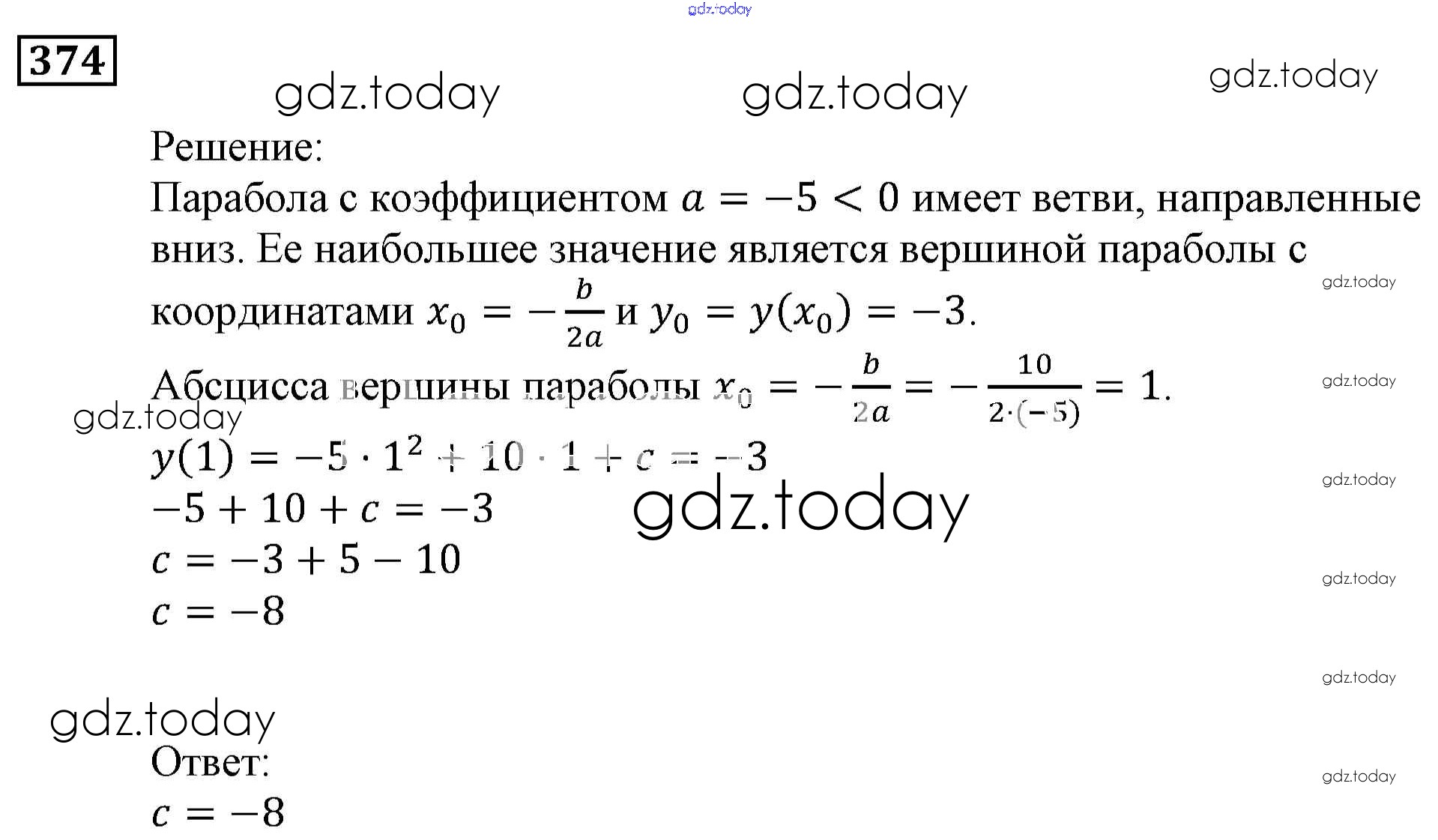 Ответы к Решение. Упражнения 374 Учебнику по Алгебре для 9 класса Мерзляк, Полонский Вентана-граф, Просвещение Алгоритм успеха 2016, 2021