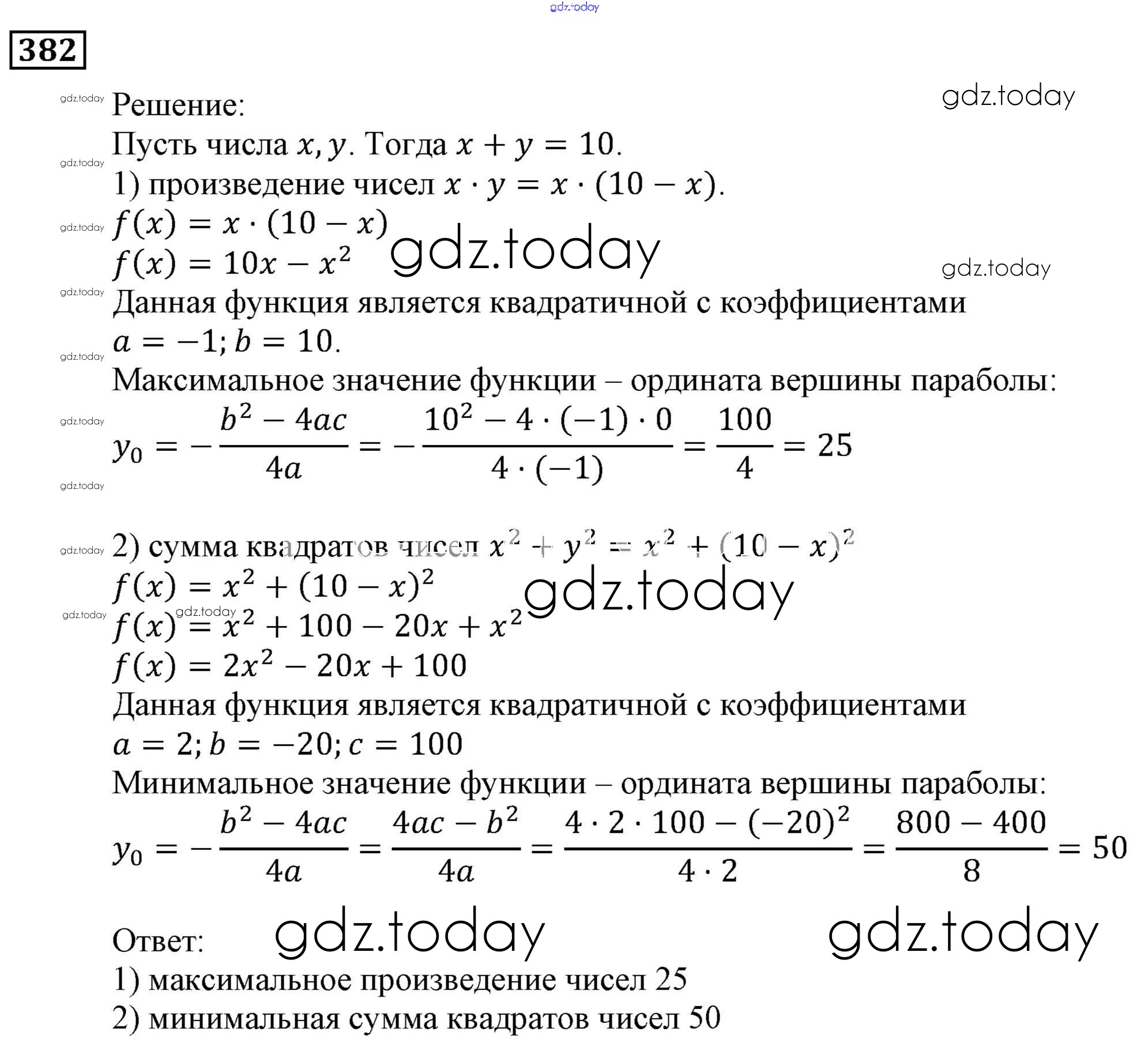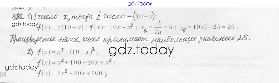 Ответы к Решение. Упражнения 382 Учебнику по Алгебре для 9 класса Мерзляк, Полонский Вентана-граф, Просвещение Алгоритм успеха 2016, 2021