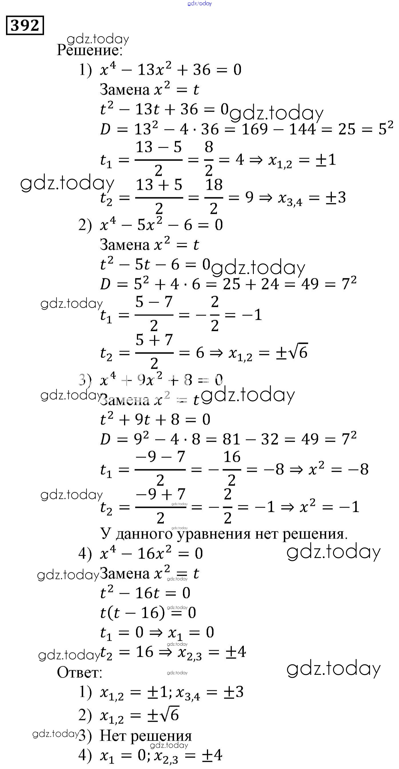Ответы к Решение. Упражнения 392 Учебнику по Алгебре для 9 класса Мерзляк, Полонский Вентана-граф, Просвещение Алгоритм успеха 2016, 2021