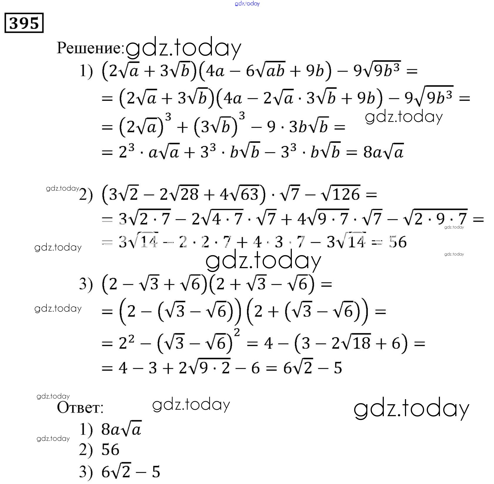Ответы к Решение. Упражнения 395 Учебнику по Алгебре для 9 класса Мерзляк, Полонский Вентана-граф, Просвещение Алгоритм успеха 2016, 2021
