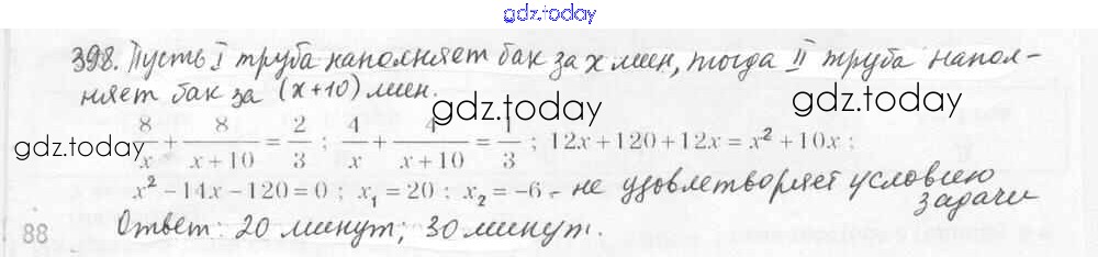 Ответы к Решение. Упражнения 398 Учебнику по Алгебре для 9 класса Мерзляк, Полонский Вентана-граф, Просвещение Алгоритм успеха 2016, 2021