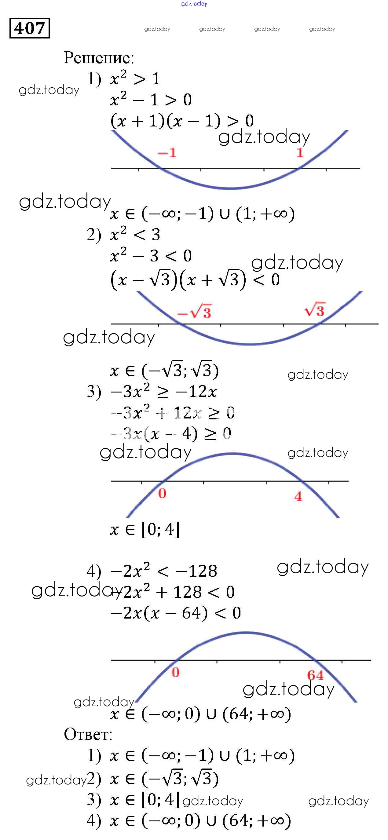 Ответы к Решение. Упражнения 407 Учебнику по Алгебре для 9 класса Мерзляк, Полонский Вентана-граф, Просвещение Алгоритм успеха 2016, 2021