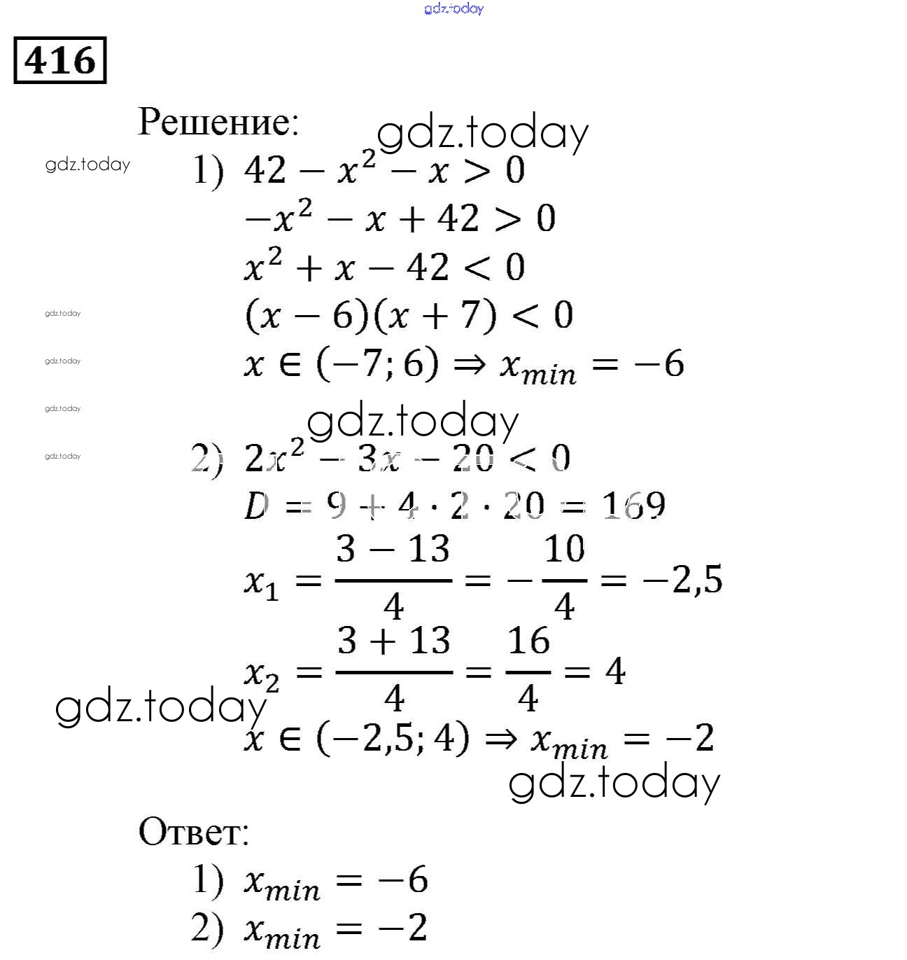 Ответы к Решение. Упражнения 416 Учебнику по Алгебре для 9 класса Мерзляк, Полонский Вентана-граф, Просвещение Алгоритм успеха 2016, 2021