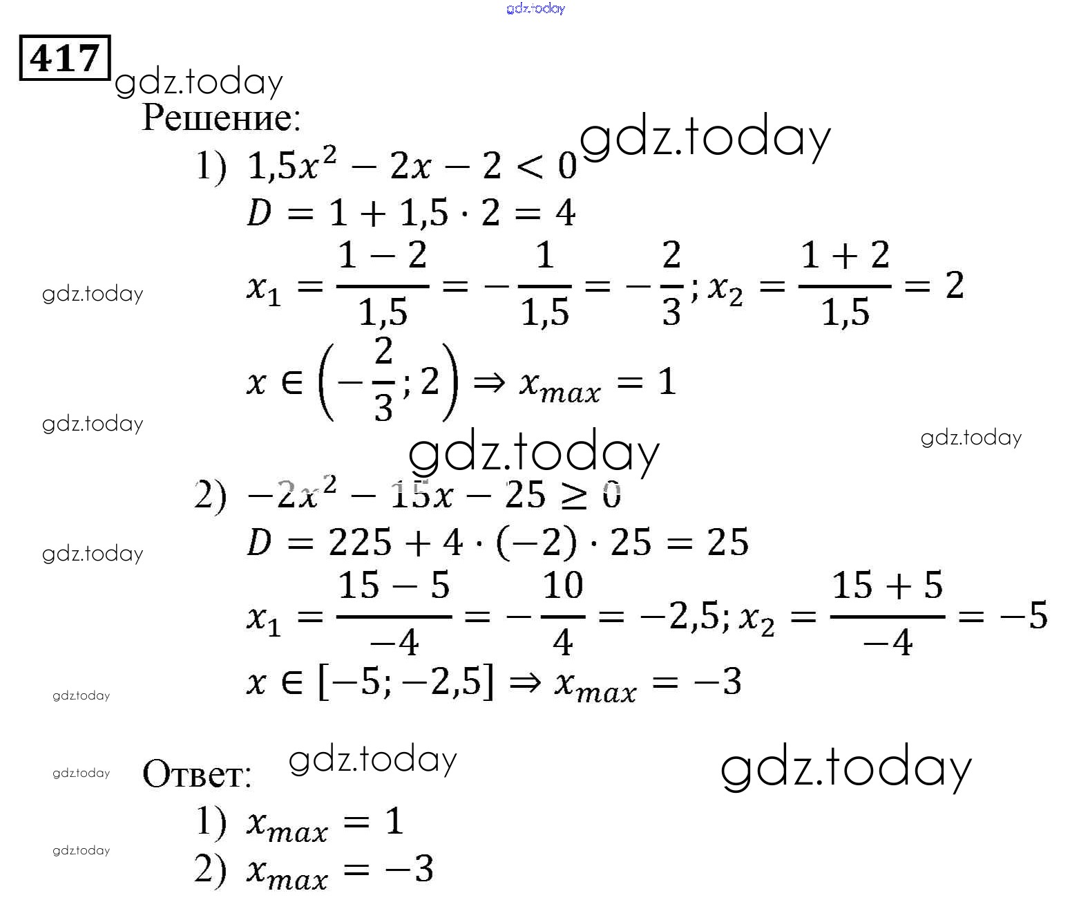 Ответы к Решение. Упражнения 417 Учебнику по Алгебре для 9 класса Мерзляк, Полонский Вентана-граф, Просвещение Алгоритм успеха 2016, 2021