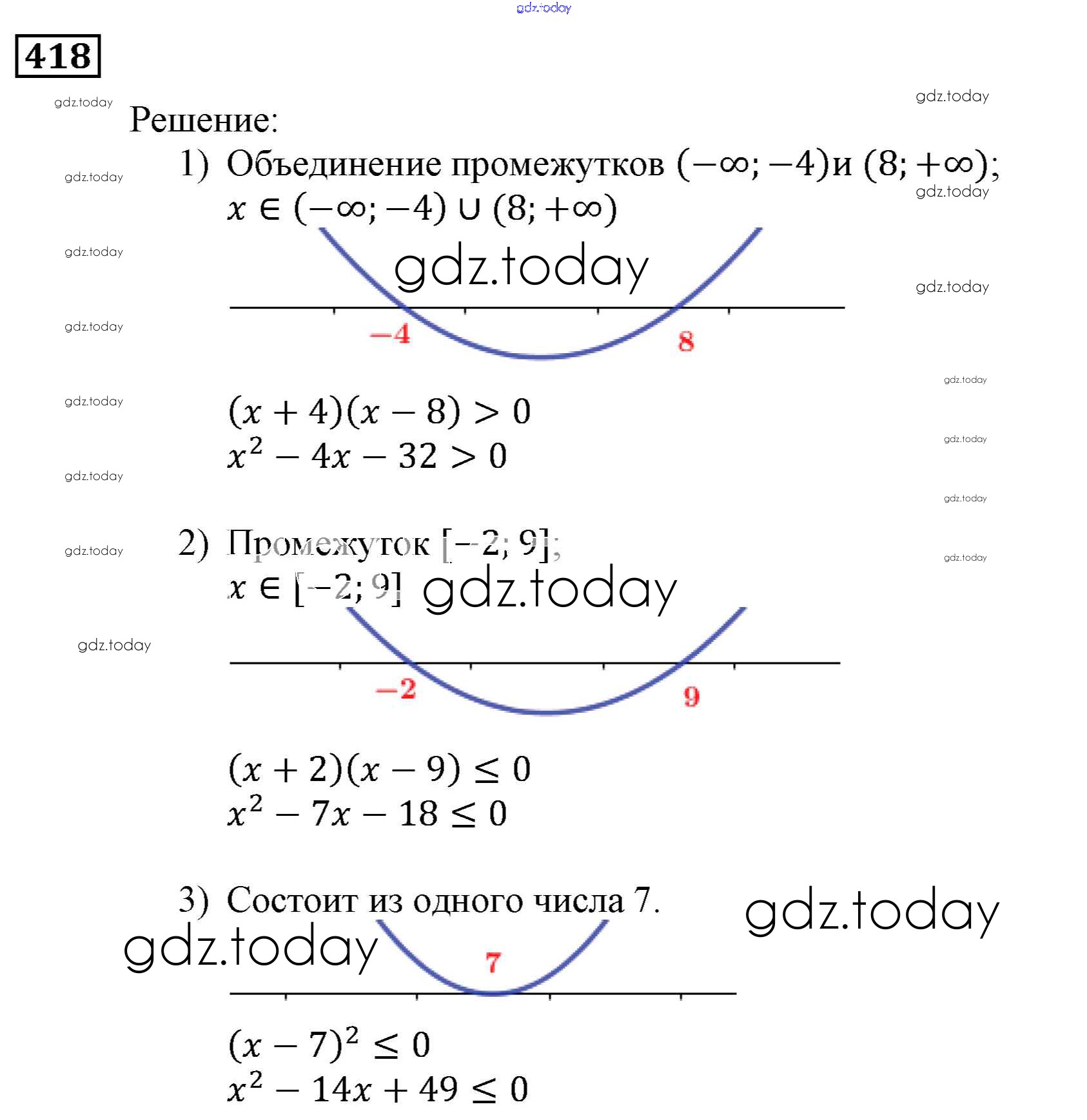 Ответы к Решение. Упражнения 418 Учебнику по Алгебре для 9 класса Мерзляк, Полонский Вентана-граф, Просвещение Алгоритм успеха 2016, 2021