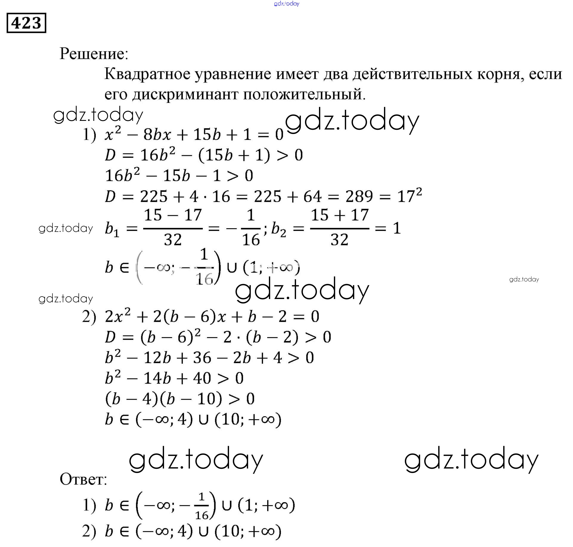 Ответы к Решение. Упражнения 423 Учебнику по Алгебре для 9 класса Мерзляк, Полонский Вентана-граф, Просвещение Алгоритм успеха 2016, 2021