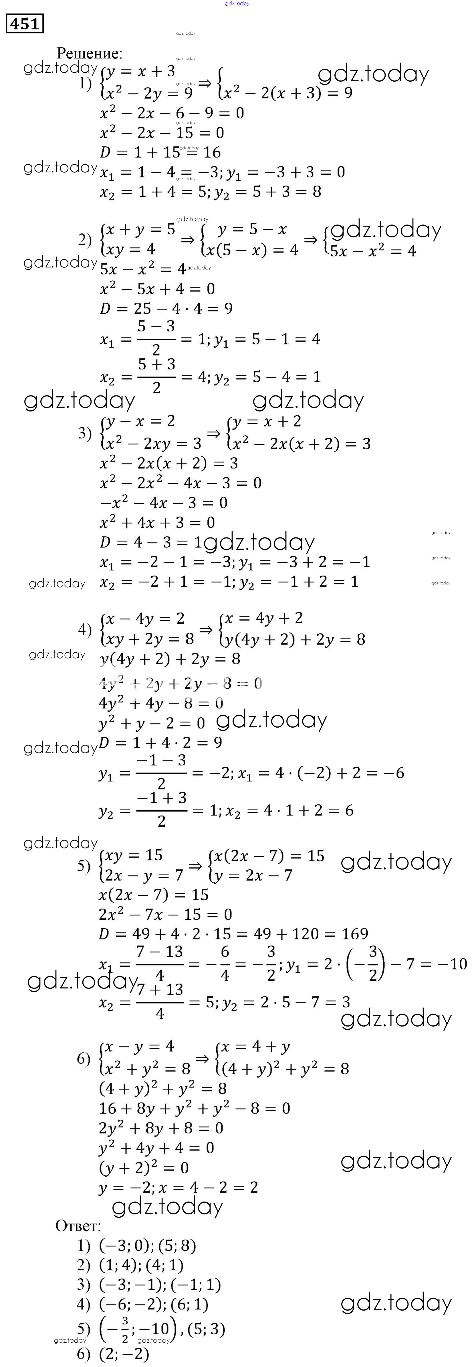 Ответы к Решение. Упражнения 451 Учебнику по Алгебре для 9 класса Мерзляк, Полонский Вентана-граф, Просвещение Алгоритм успеха 2016, 2021