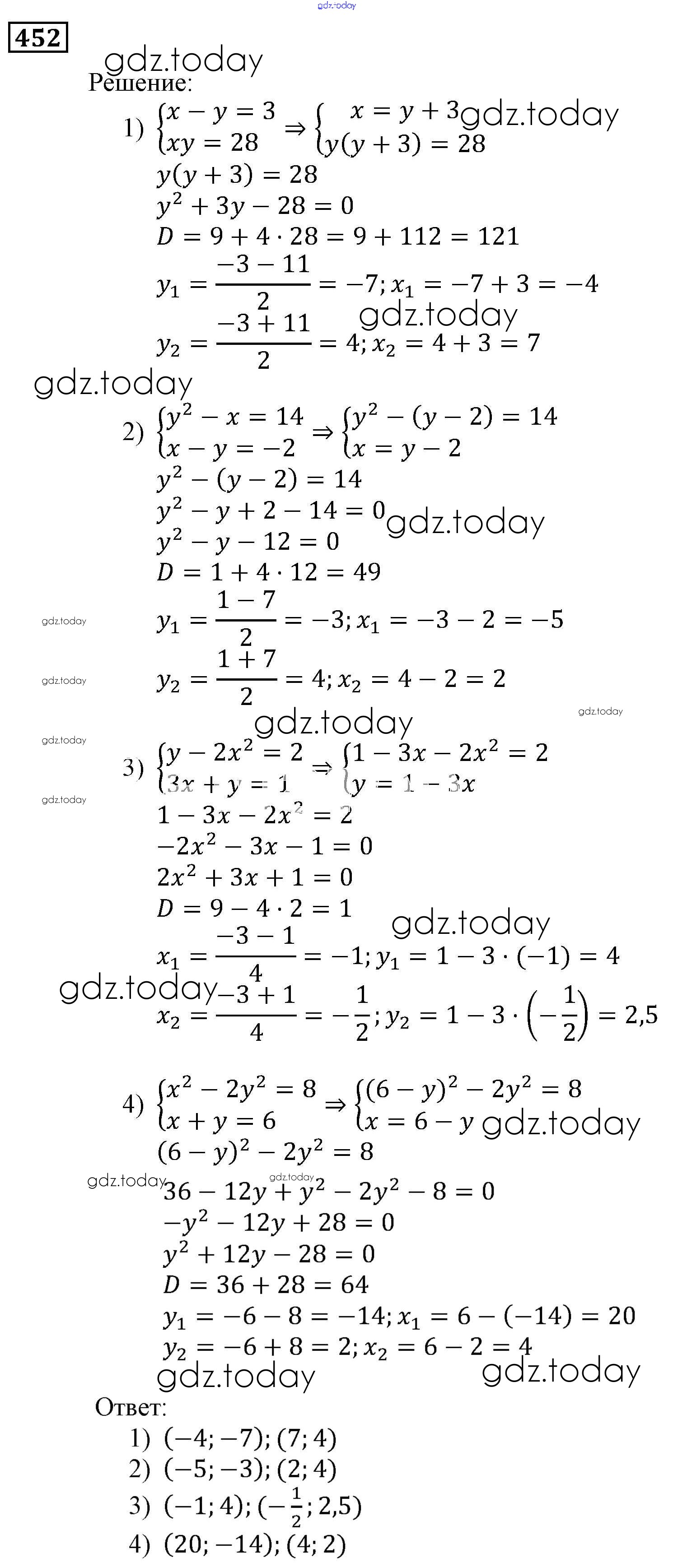 Ответы к Решение. Упражнения 452 Учебнику по Алгебре для 9 класса Мерзляк, Полонский Вентана-граф, Просвещение Алгоритм успеха 2016, 2021