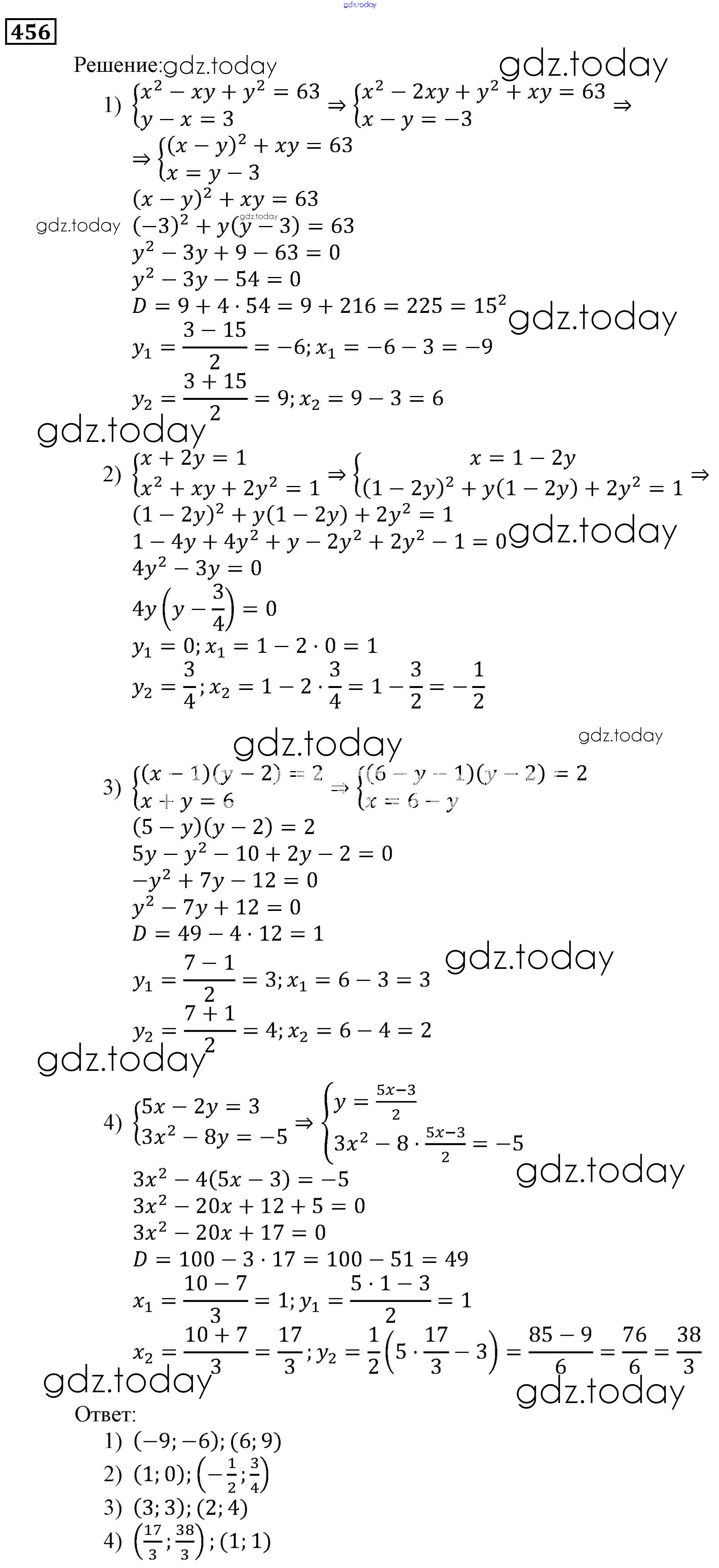 Ответы к Решение. Упражнения 456 Учебнику по Алгебре для 9 класса Мерзляк, Полонский Вентана-граф, Просвещение Алгоритм успеха 2016, 2021