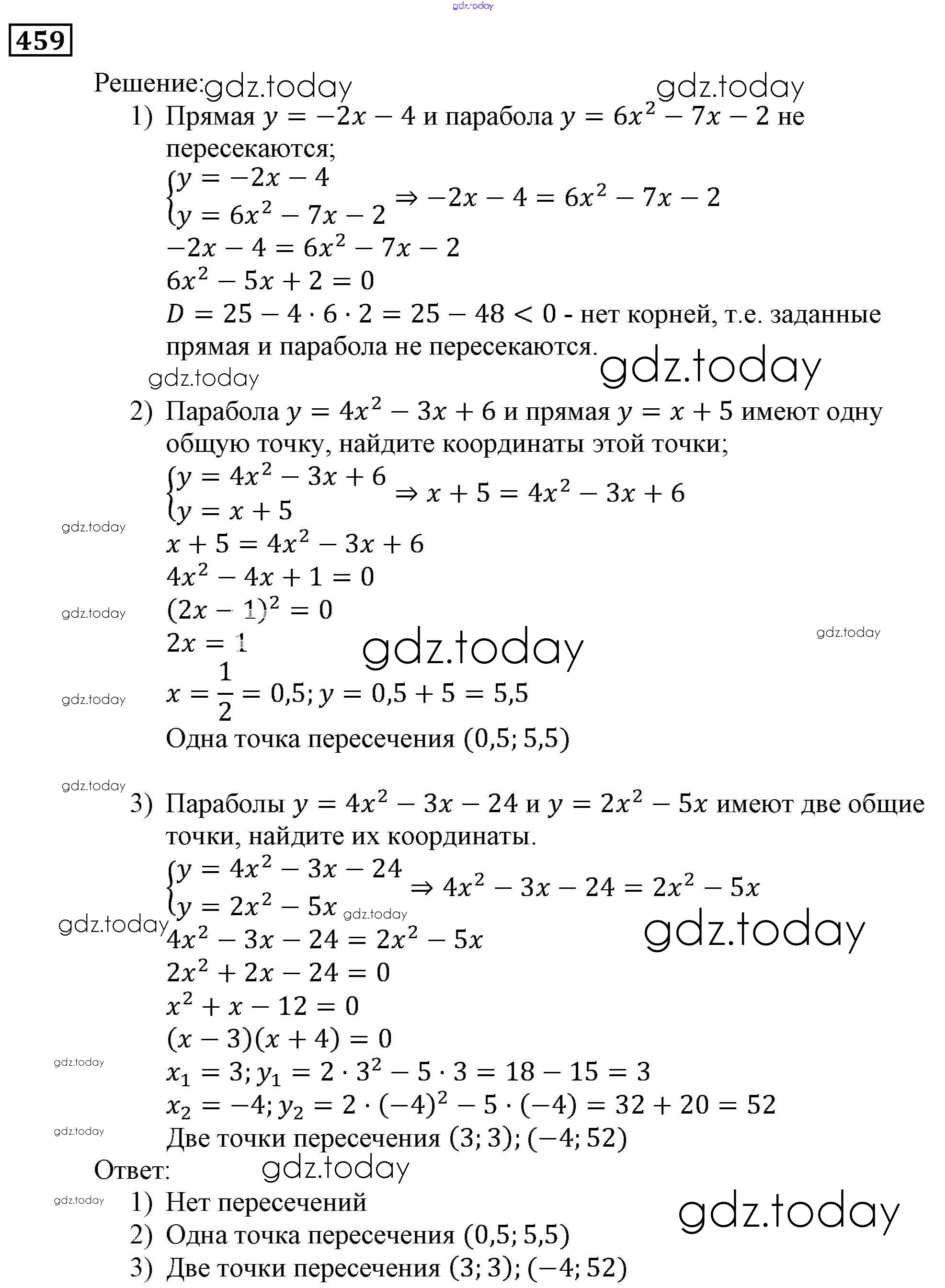 Ответы к Решение. Упражнения 459 Учебнику по Алгебре для 9 класса Мерзляк, Полонский Вентана-граф, Просвещение Алгоритм успеха 2016, 2021