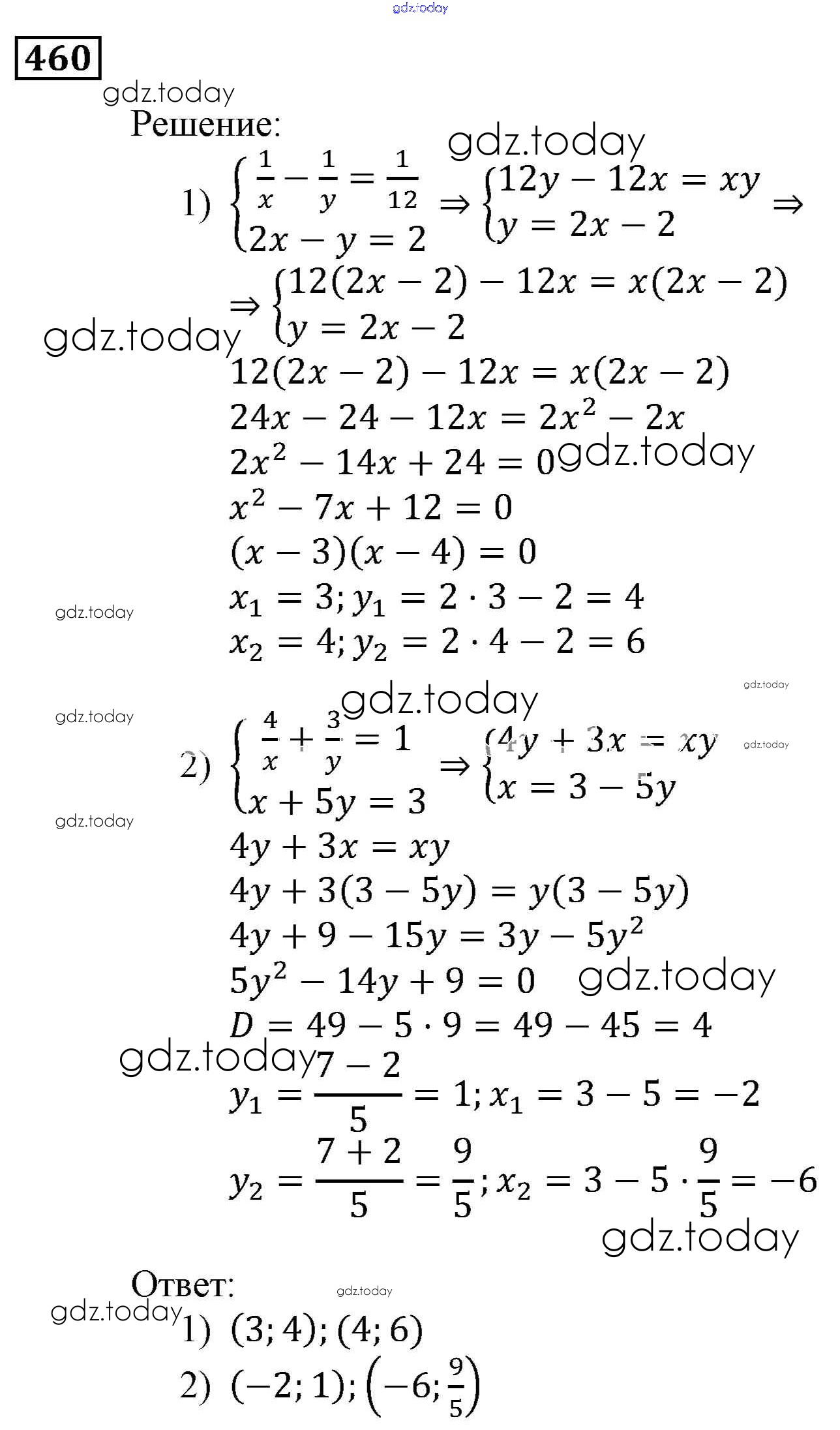 Ответы к Решение. Упражнения 460 Учебнику по Алгебре для 9 класса Мерзляк, Полонский Вентана-граф, Просвещение Алгоритм успеха 2016, 2021