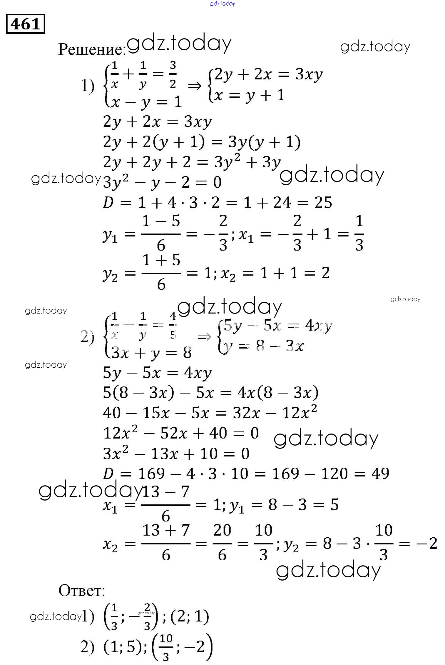 Ответы к Решение. Упражнения 461 Учебнику по Алгебре для 9 класса Мерзляк, Полонский Вентана-граф, Просвещение Алгоритм успеха 2016, 2021