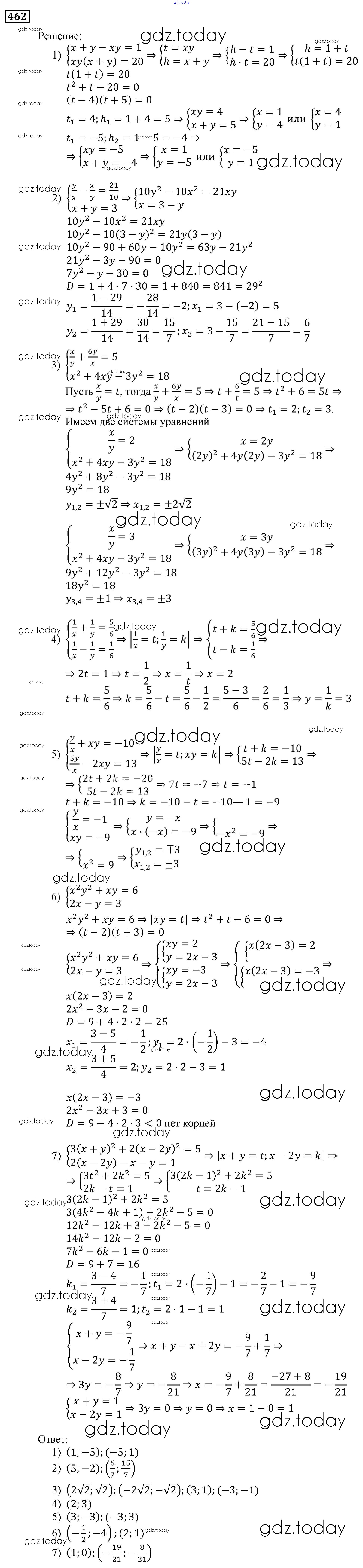 Ответы к Решение. Упражнения 462 Учебнику по Алгебре для 9 класса Мерзляк, Полонский Вентана-граф, Просвещение Алгоритм успеха 2016, 2021