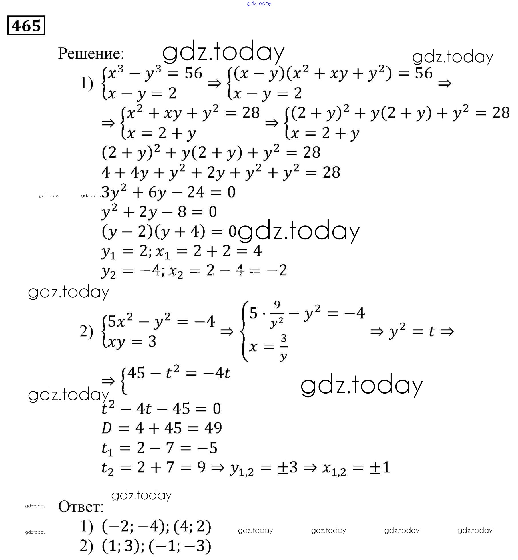 Ответы к Решение. Упражнения 465 Учебнику по Алгебре для 9 класса Мерзляк, Полонский Вентана-граф, Просвещение Алгоритм успеха 2016, 2021
