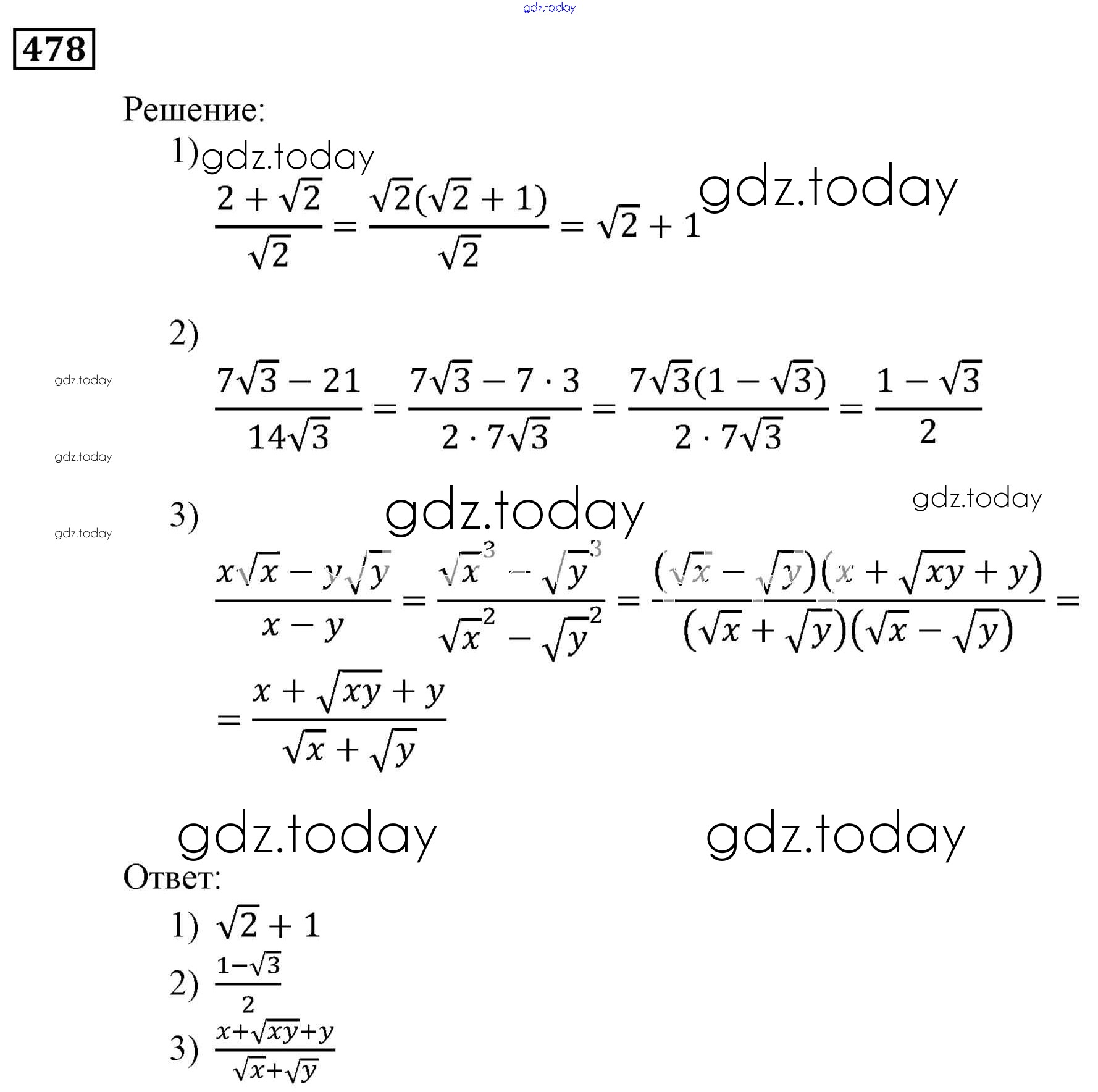 Ответы к Решение. Упражнения 478 Учебнику по Алгебре для 9 класса Мерзляк, Полонский Вентана-граф, Просвещение Алгоритм успеха 2016, 2021
