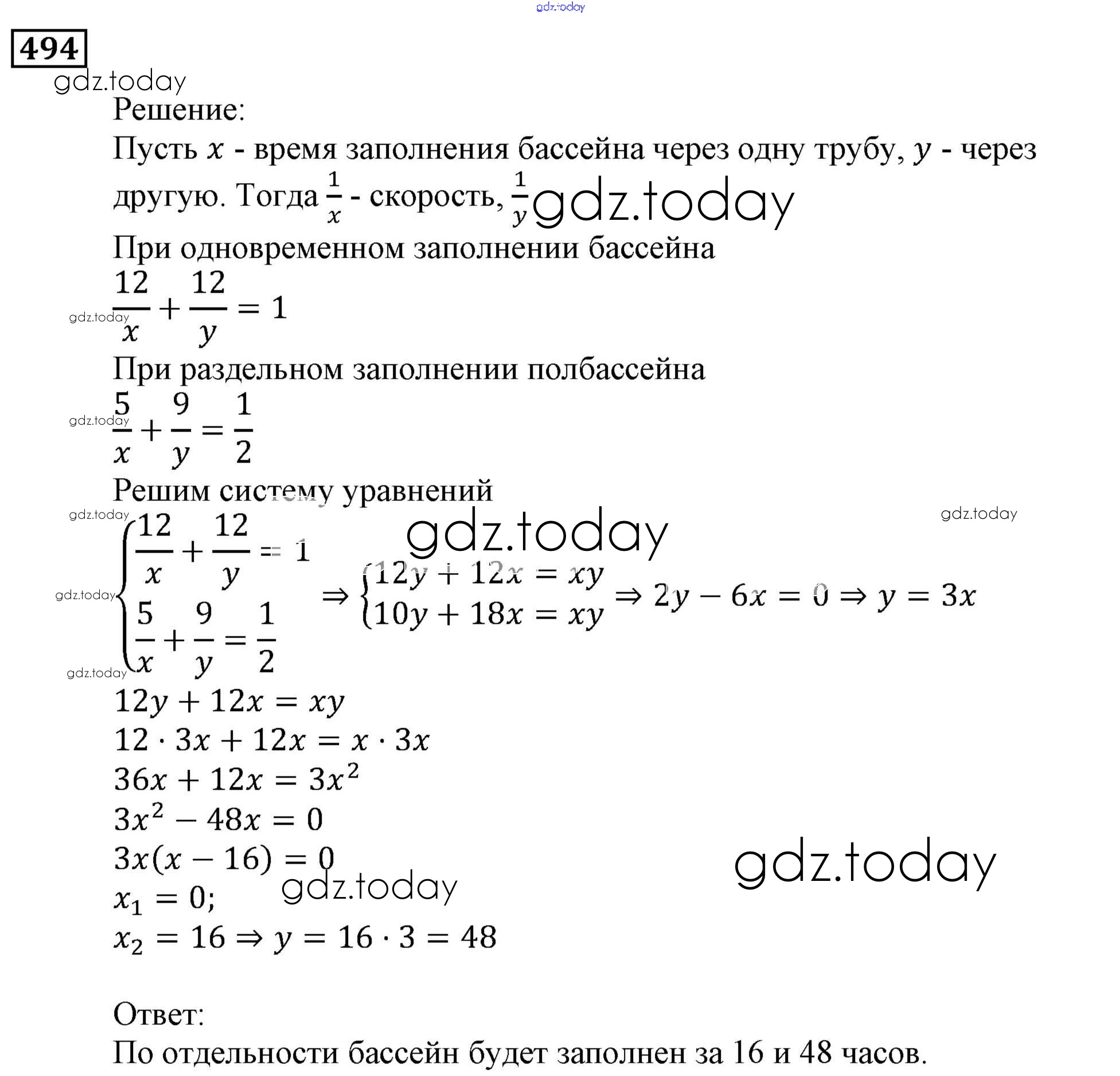Ответы к Решение. Упражнения 494 Учебнику по Алгебре для 9 класса Мерзляк, Полонский Вентана-граф, Просвещение Алгоритм успеха 2016, 2021