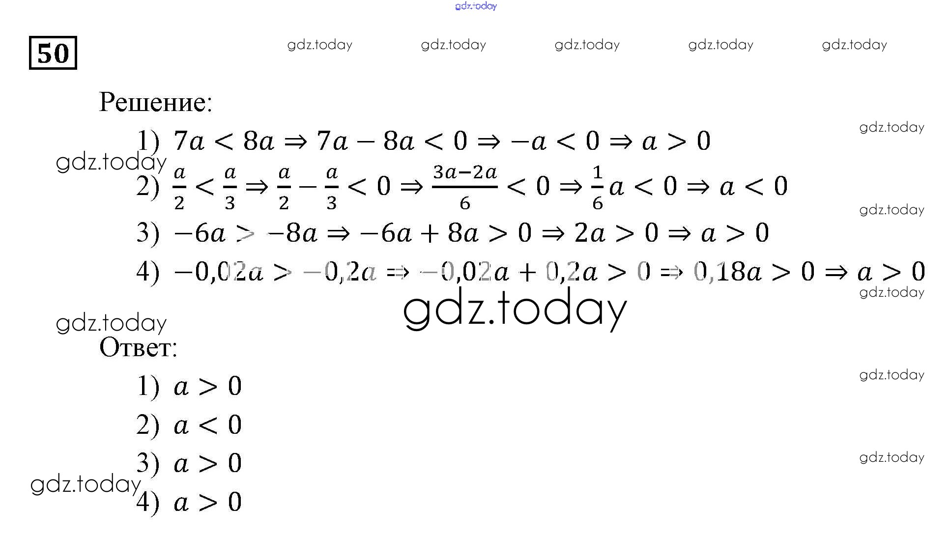 На страницах сайта gdz.today вы найдете учебный и вспомогательный материал, направленный на улучшения знаний школьной программы. ГДЗ - онлайн мир знаний Решение. Упражнения 50 Учебнику по Алгебре для 9 класса Мерзляк, Полонский Вентана-граф, Просвещение Алгоритм успеха 2016, 2021