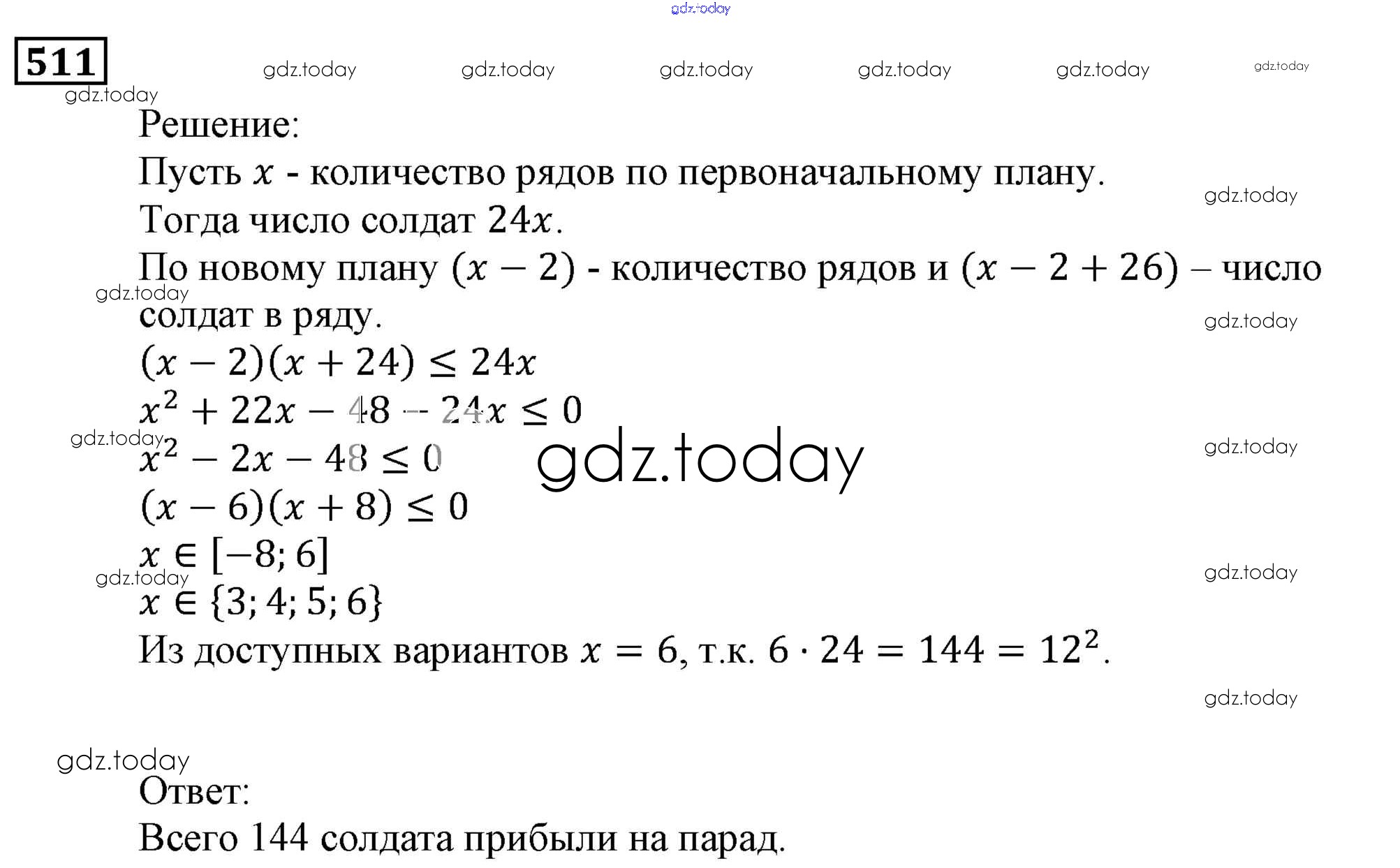 Ответы к Решение. Упражнения 511 Учебнику по Алгебре для 9 класса Мерзляк, Полонский Вентана-граф, Просвещение Алгоритм успеха 2016, 2021