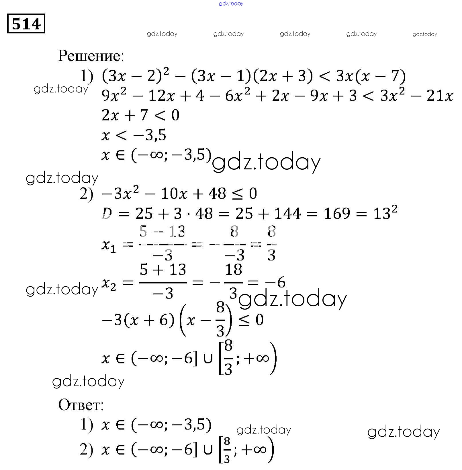 Ответы к Решение. Упражнения 514 Учебнику по Алгебре для 9 класса Мерзляк, Полонский Вентана-граф, Просвещение Алгоритм успеха 2016, 2021
