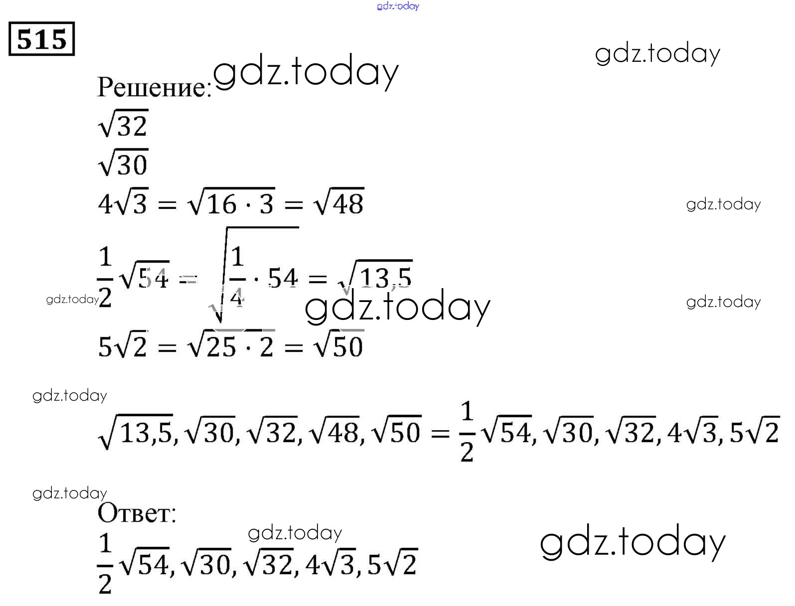 Ответы к Решение. Упражнения 515 Учебнику по Алгебре для 9 класса Мерзляк, Полонский Вентана-граф, Просвещение Алгоритм успеха 2016, 2021