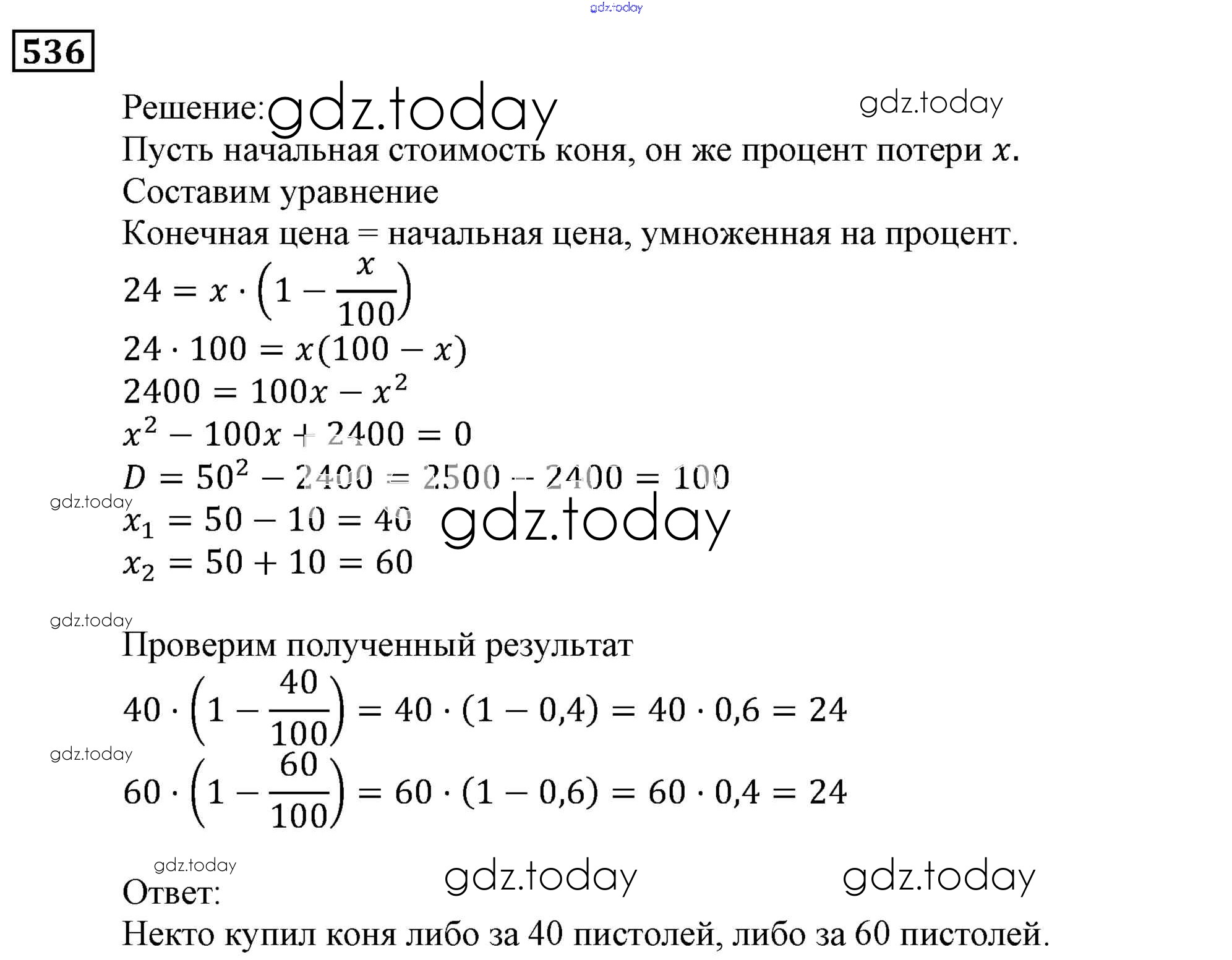 Ответы к Решение. Упражнения 536 Учебнику по Алгебре для 9 класса Мерзляк, Полонский Вентана-граф, Просвещение Алгоритм успеха 2016, 2021