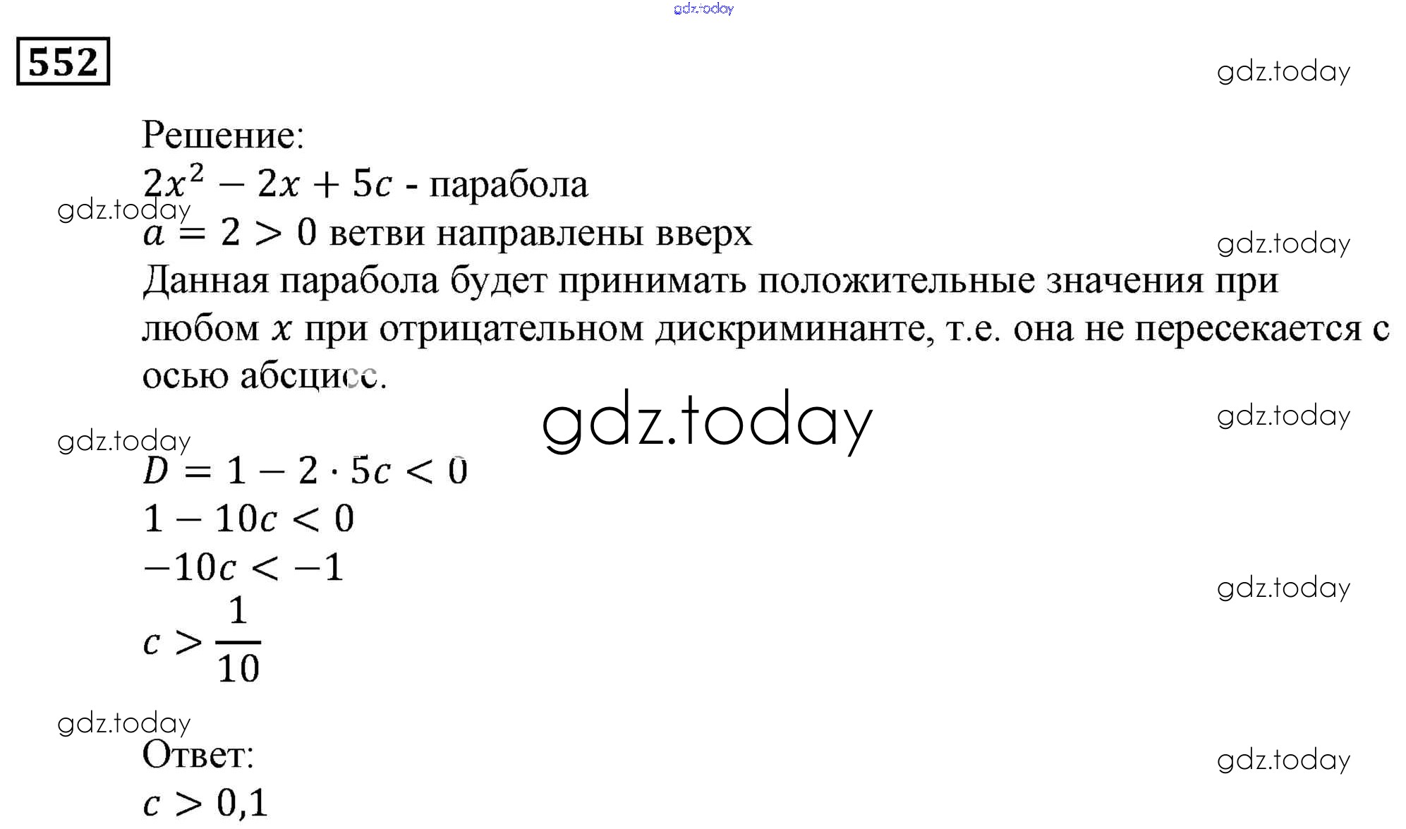 Ответы к Решение. Упражнения 552 Учебнику по Алгебре для 9 класса Мерзляк, Полонский Вентана-граф, Просвещение Алгоритм успеха 2016, 2021