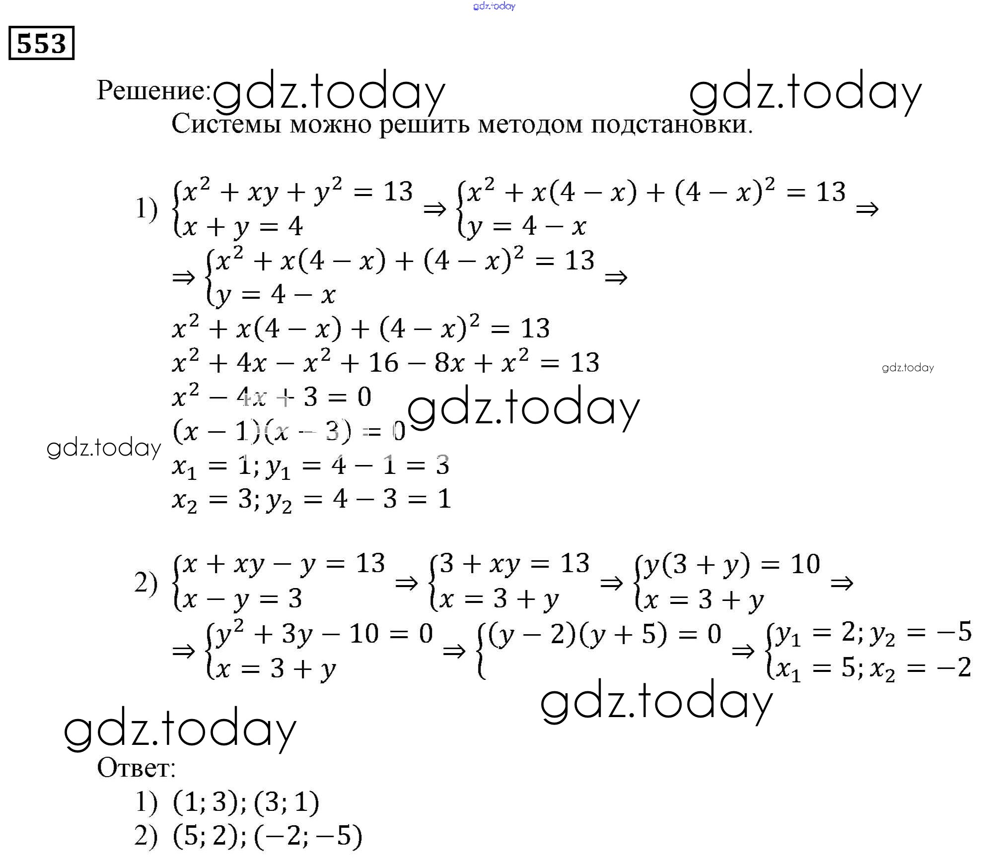 Ответы к Решение. Упражнения 553 Учебнику по Алгебре для 9 класса Мерзляк, Полонский Вентана-граф, Просвещение Алгоритм успеха 2016, 2021