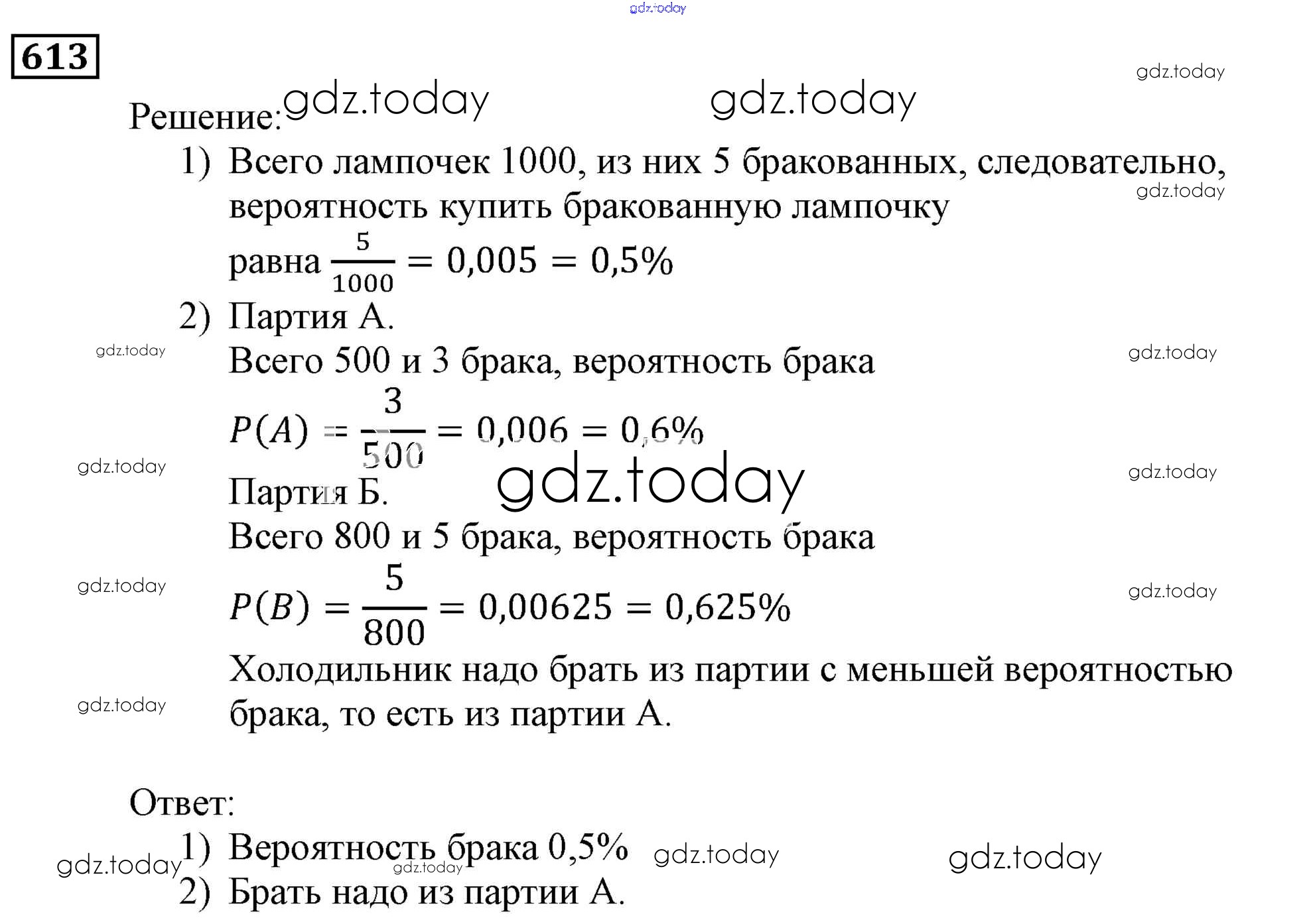 Ответы к Решение. Упражнения 613 Учебнику по Алгебре для 9 класса Мерзляк, Полонский Вентана-граф, Просвещение Алгоритм успеха 2016, 2021