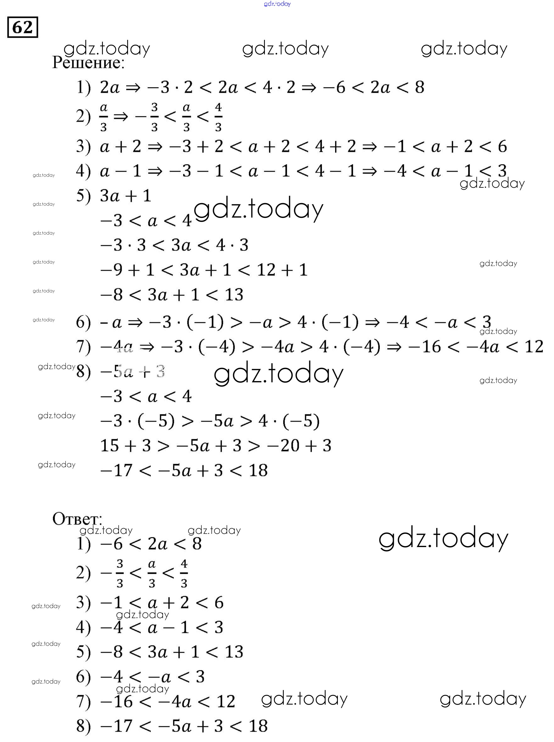 Ответы к Решение. Упражнения 62 Учебнику по Алгебре для 9 класса Мерзляк, Полонский Вентана-граф, Просвещение Алгоритм успеха 2016, 2021