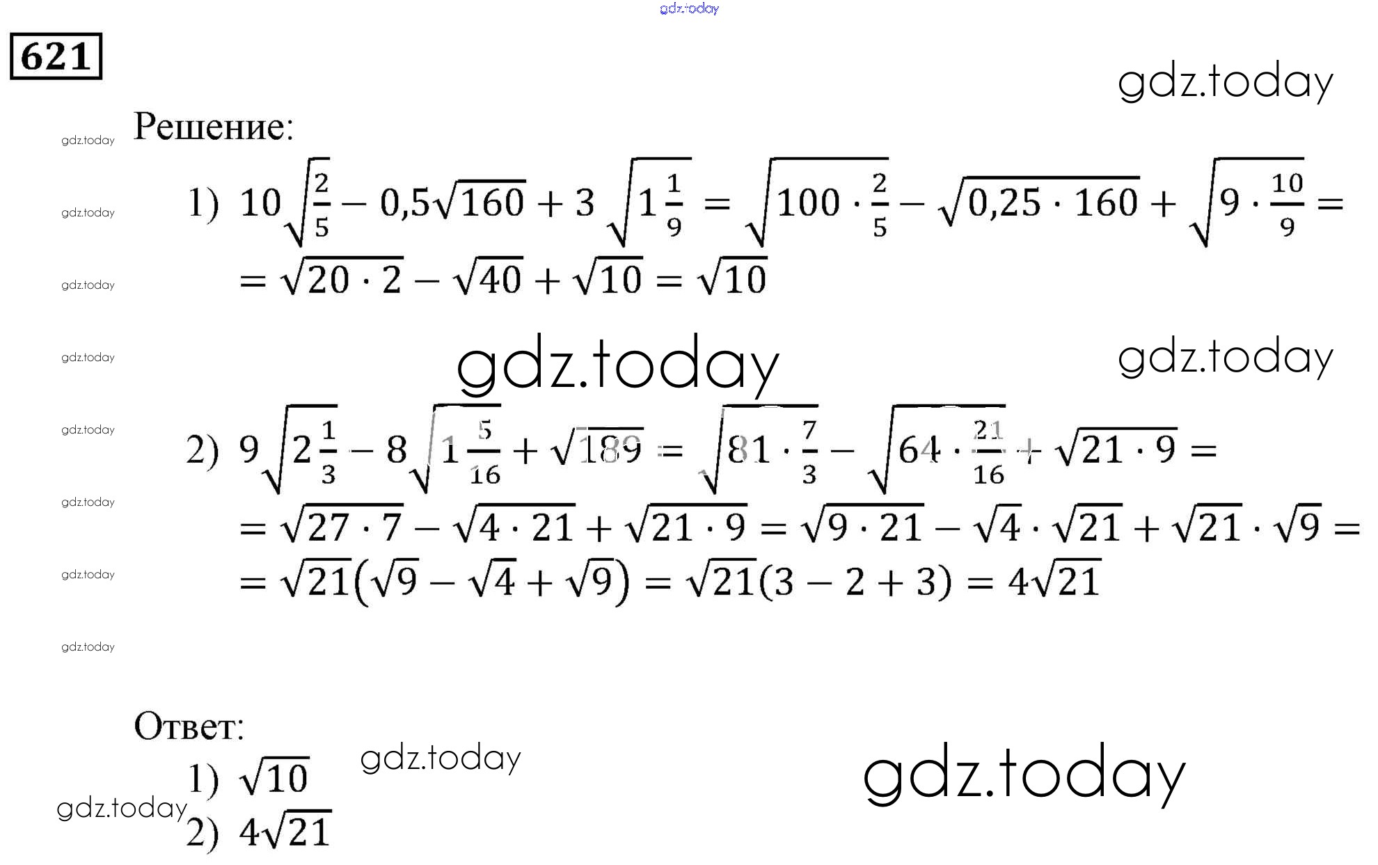 Ответы к Решение. Упражнения 621 Учебнику по Алгебре для 9 класса Мерзляк, Полонский Вентана-граф, Просвещение Алгоритм успеха 2016, 2021