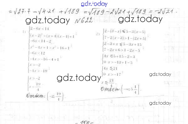 Ответы к Решение. Упражнения 622 Учебнику по Алгебре для 9 класса Мерзляк, Полонский Вентана-граф, Просвещение Алгоритм успеха 2016, 2021