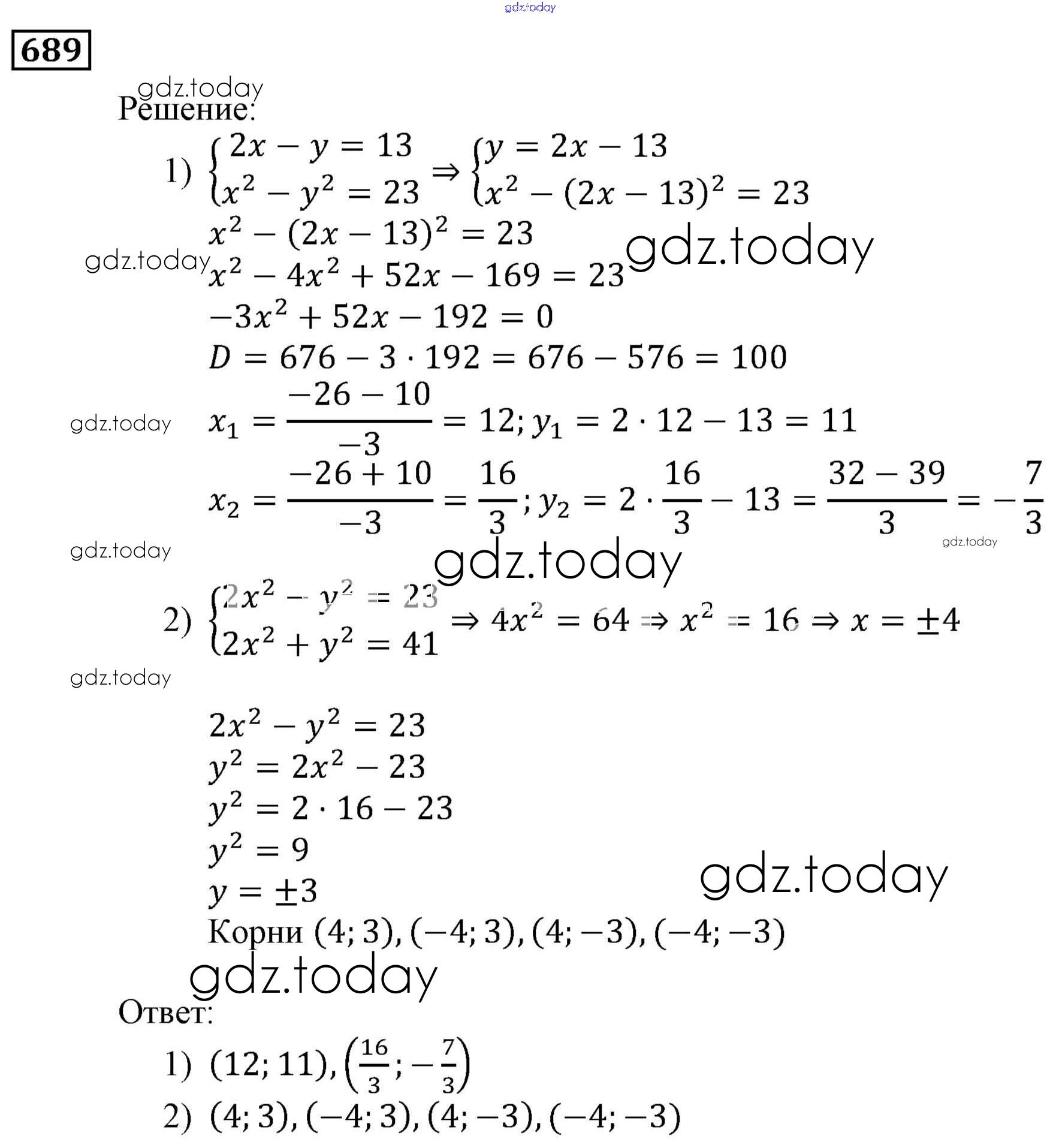 Ответы к Решение. Упражнения 689 Учебнику по Алгебре для 9 класса Мерзляк, Полонский Вентана-граф, Просвещение Алгоритм успеха 2016, 2021
