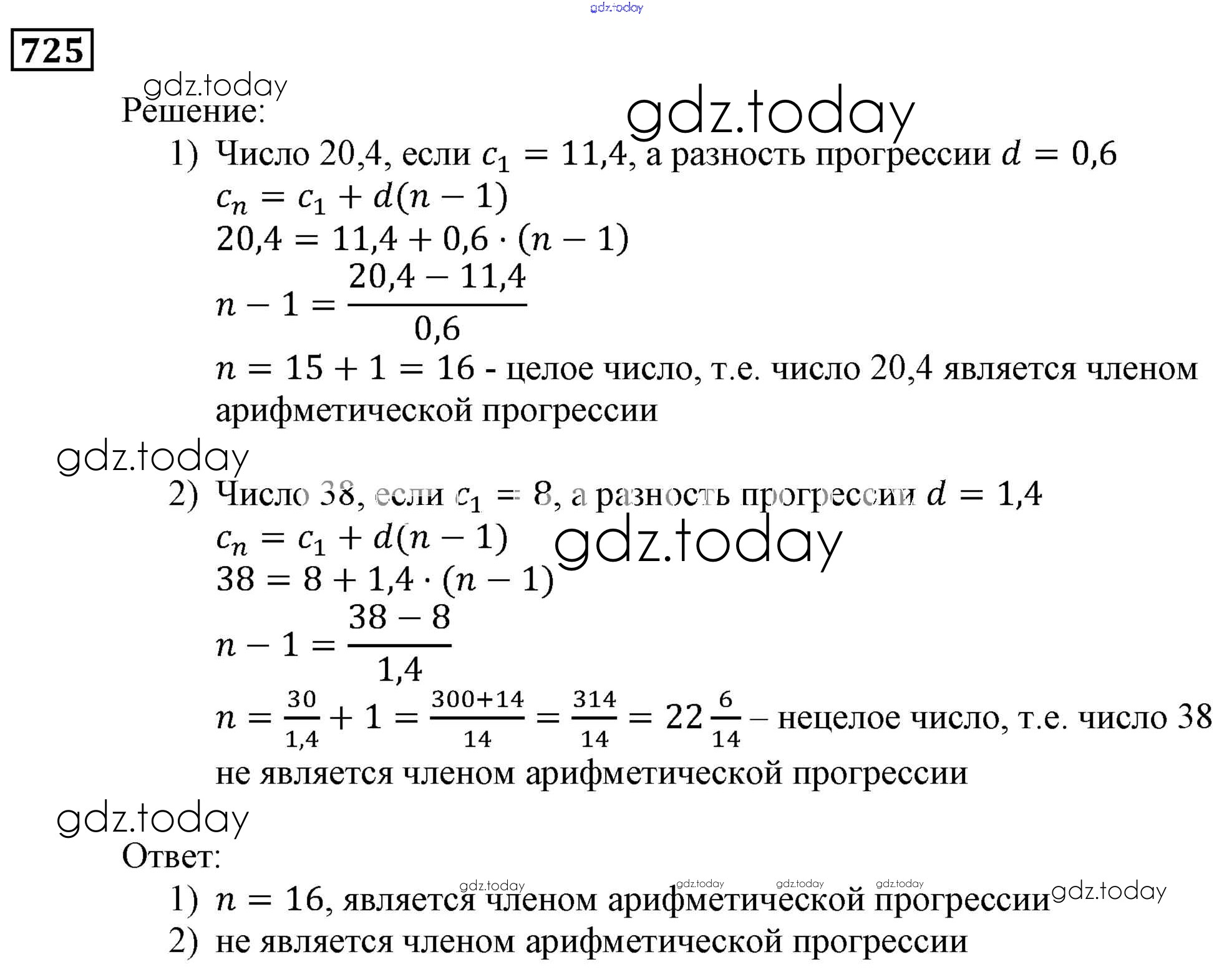 Ответы к Решение. Упражнения 725 Учебнику по Алгебре для 9 класса Мерзляк, Полонский Вентана-граф, Просвещение Алгоритм успеха 2016, 2021